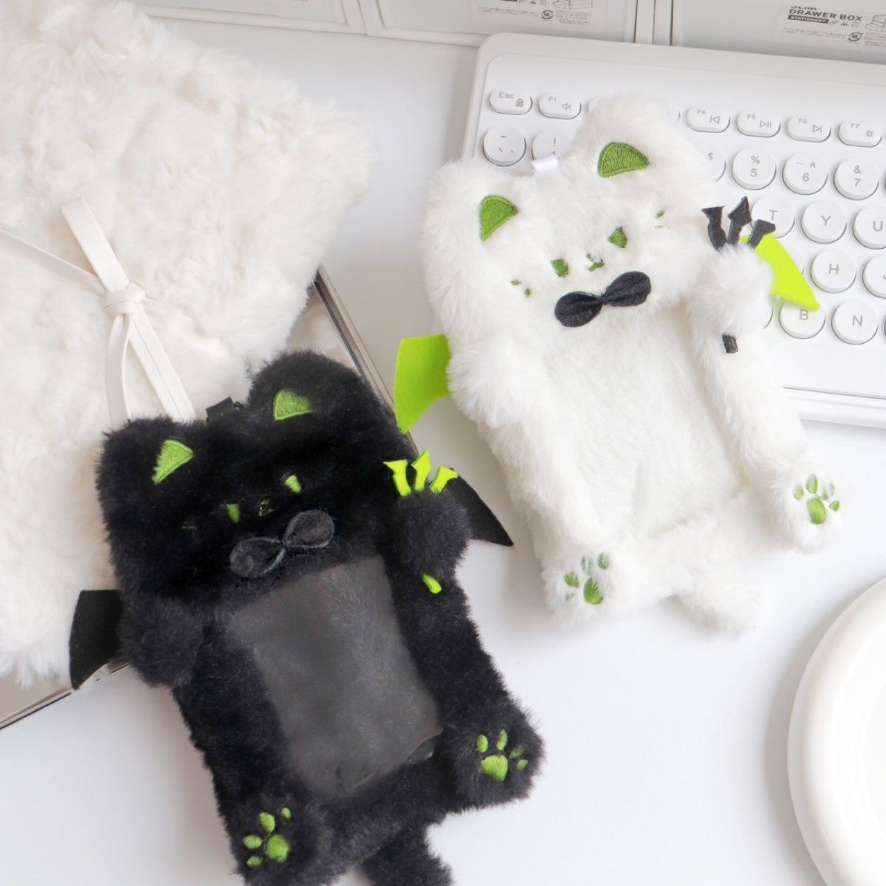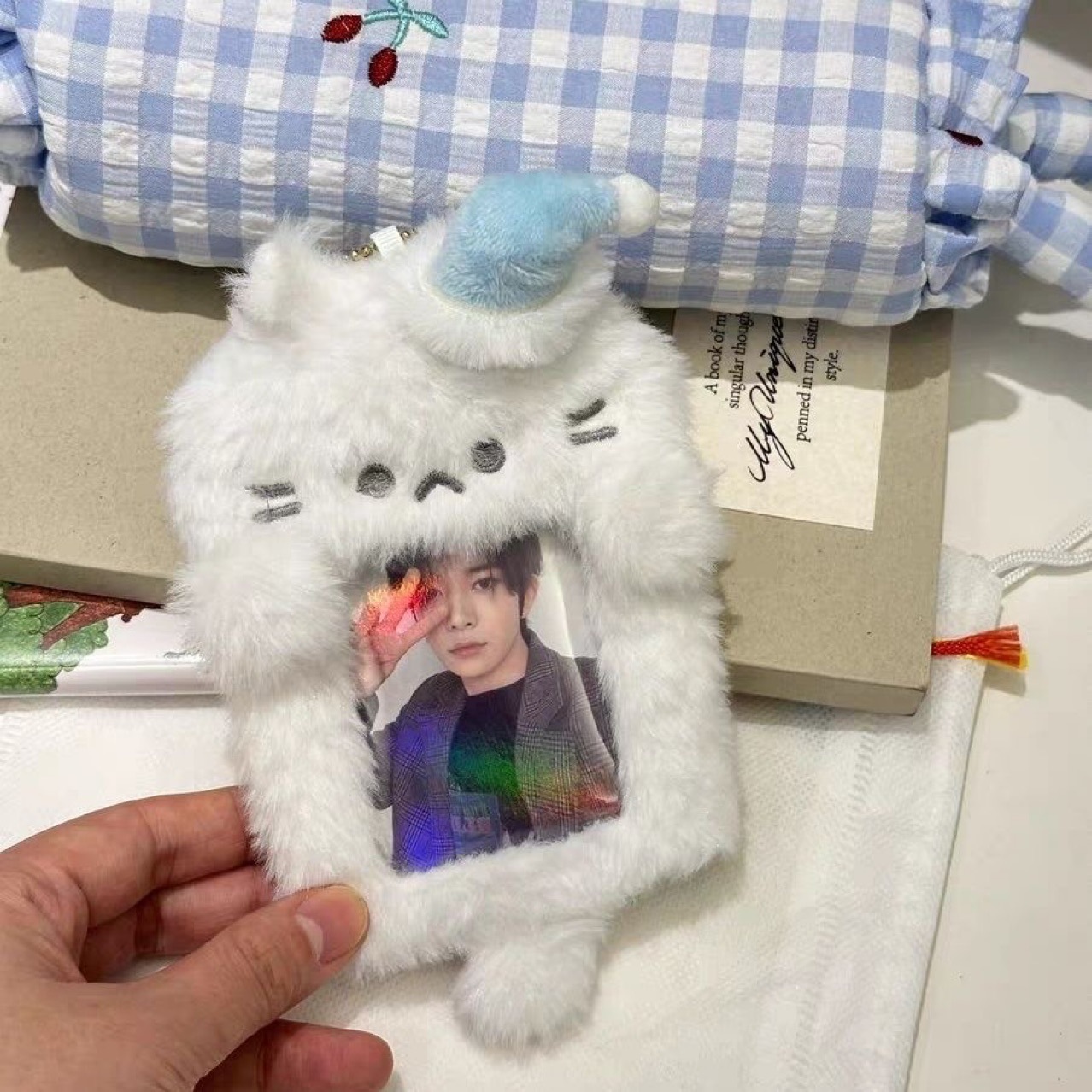 かわいい白いぬいぐるみの子犬のカードカバー3インチの写真収納保護カバー