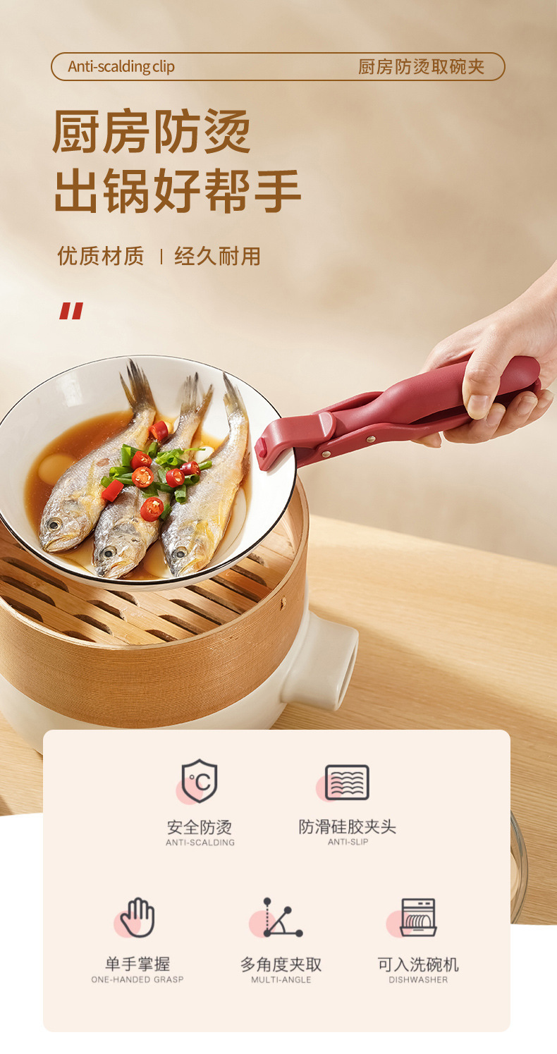 耐高温硅胶防烫夹子取碗器厨房多功能防滑夹提碗夹盘实用小工具