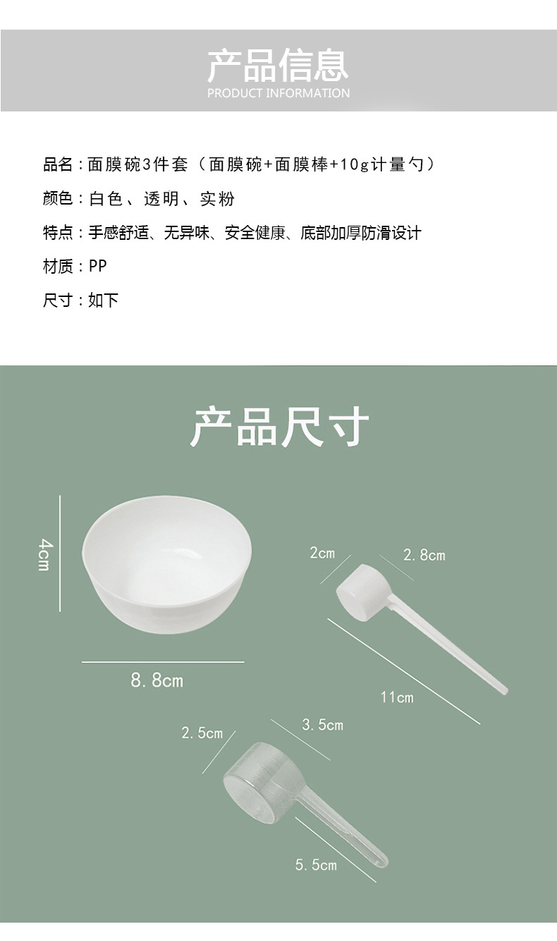 面膜碗采用PP塑料制成,手感柔软,使用方便;大小适中