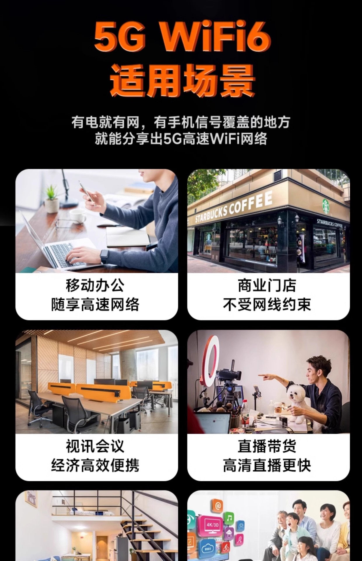 5g無線携帯wifiは広く家庭用商用生放送をカバーしています。