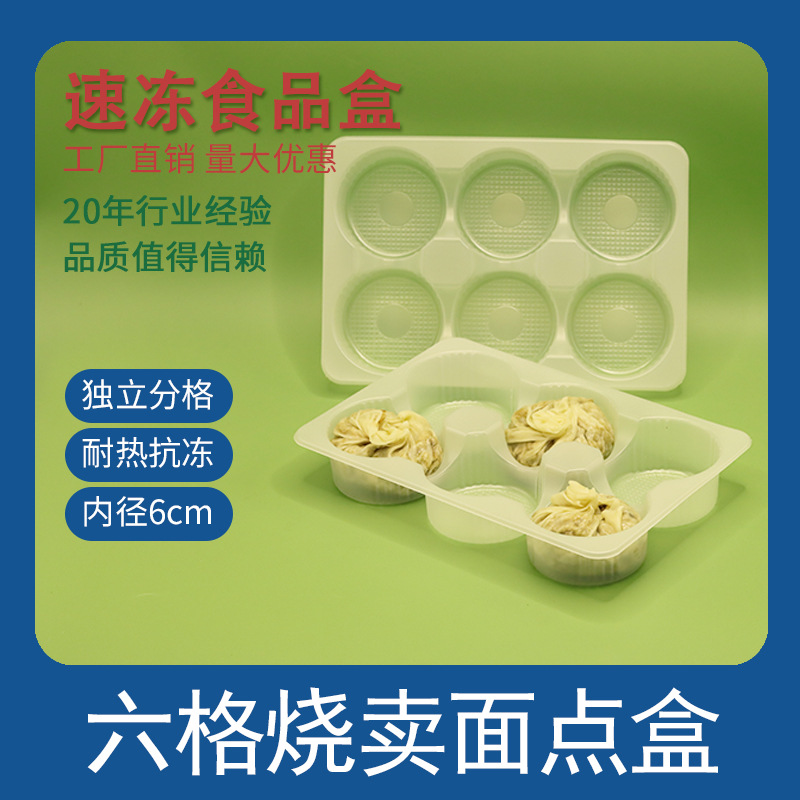 六格烧卖面点包装盒食品级PP 6粒包子冷冻盒青团月饼吸塑内托商超
