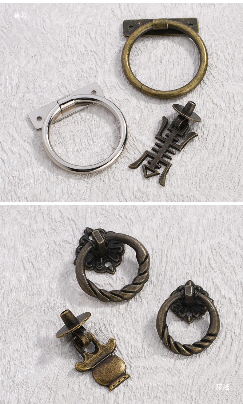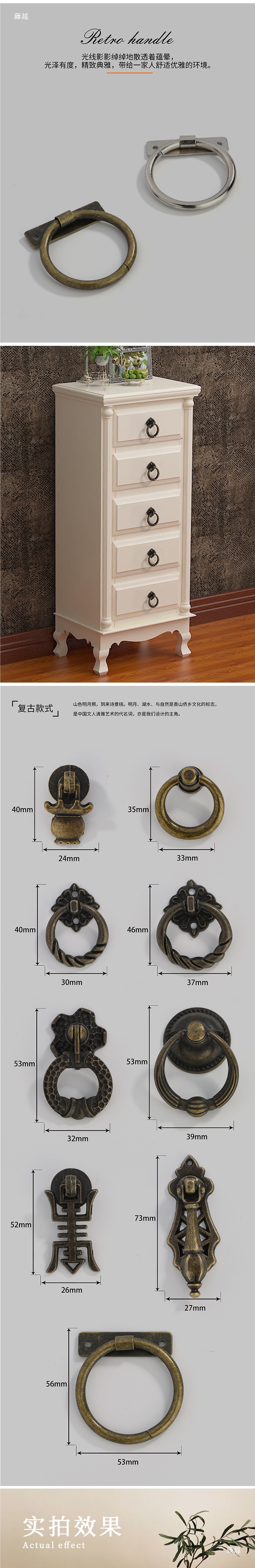 引き出しの取っ手のタンスのドアの取っ手の食器棚は古い双穴の小さい取っ手の環状の青古銅に似ています。