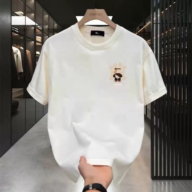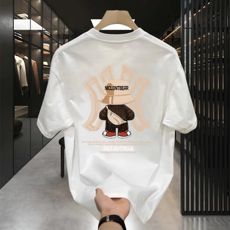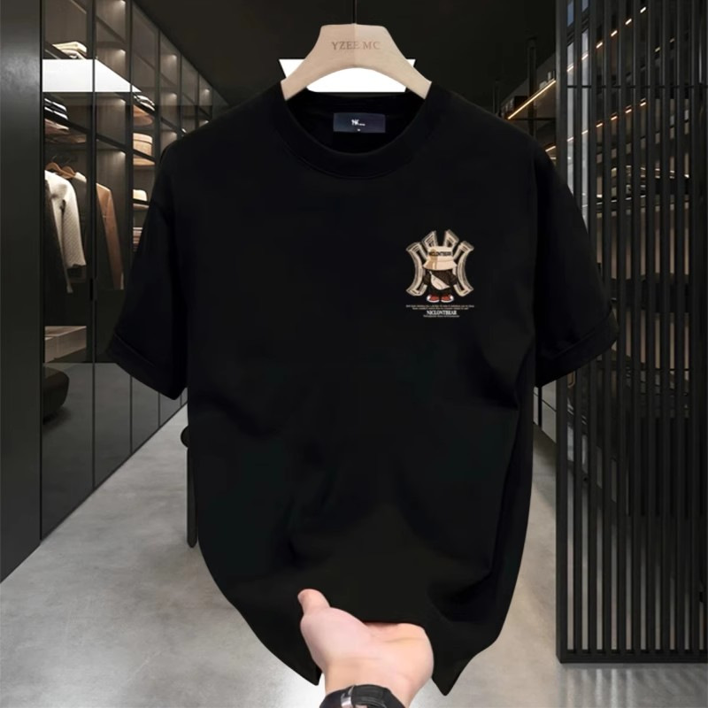 プリントtシャツ半袖メンズ2024新作夏カジュアルトレンド行スリム高級感黒ボトム半袖