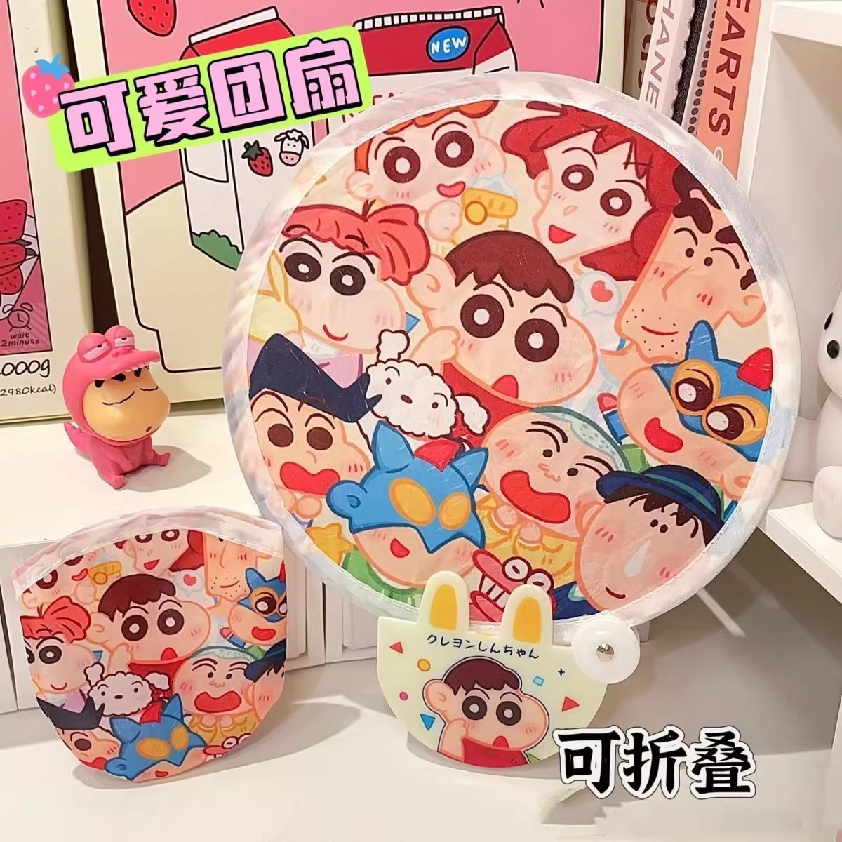 アニメ自撮り反射板折り畳み扇子便利式手揺団扇夏かわいい携帯しんちゃん団扇