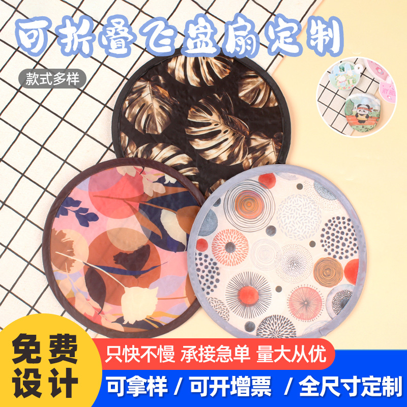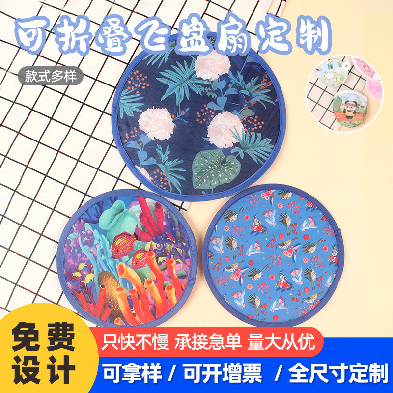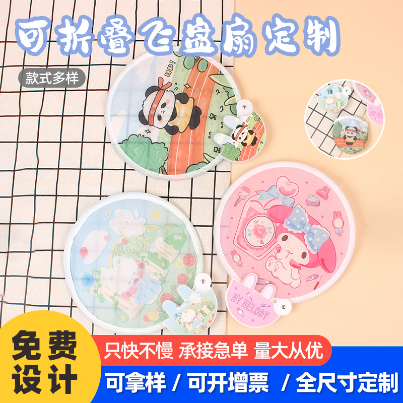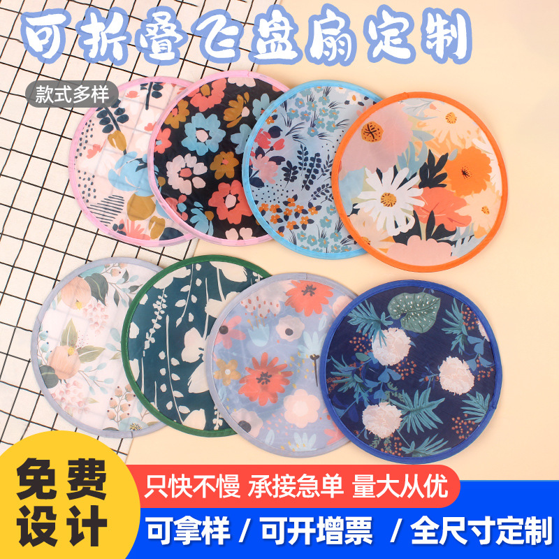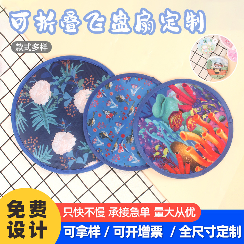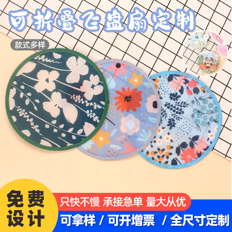 折り畳み可能なフリスビー扇風機卸売りロゴクリエイティブ宣伝広告扇子布面アニメ団扇携帯反射円扇