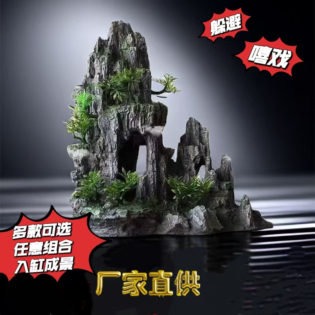 水槽造景装飾樹脂製人工山水水族館小型人工山水ホームクラフト魚エビ隠れ家装飾ミニ