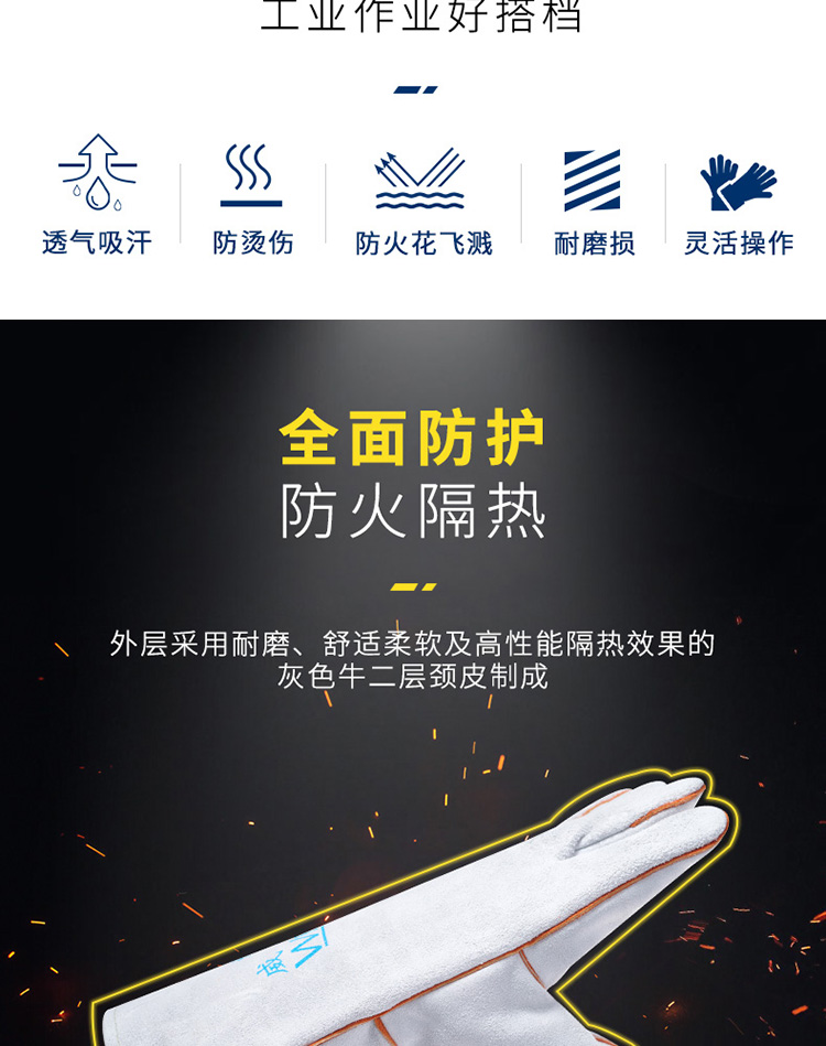 牛革の電気溶接の手袋の柔らかい皮は高温に耐えて断熱します。