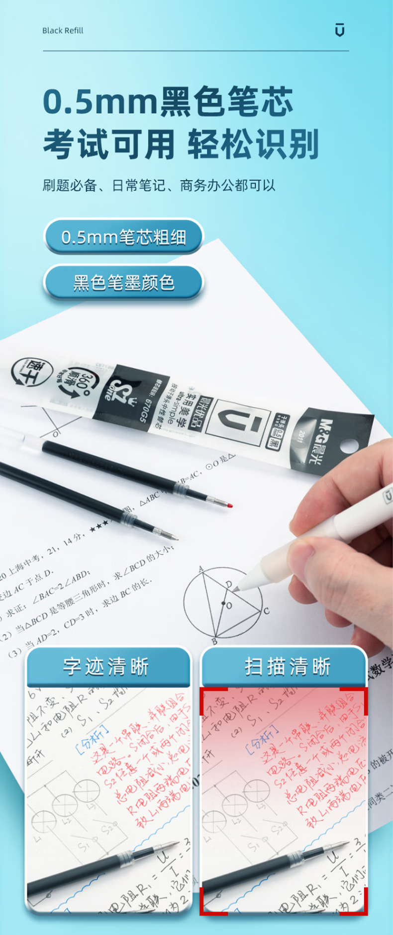 晨光按动替芯ST黑色0.5速干大容量按动中性笔笔芯刷题笔黑芯