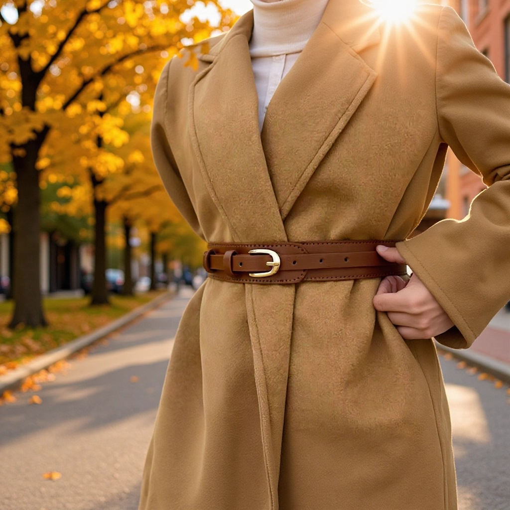 クロスボーダーの新型ワイドウエストの女性は腰を収めてコートのベルトを飾ります。