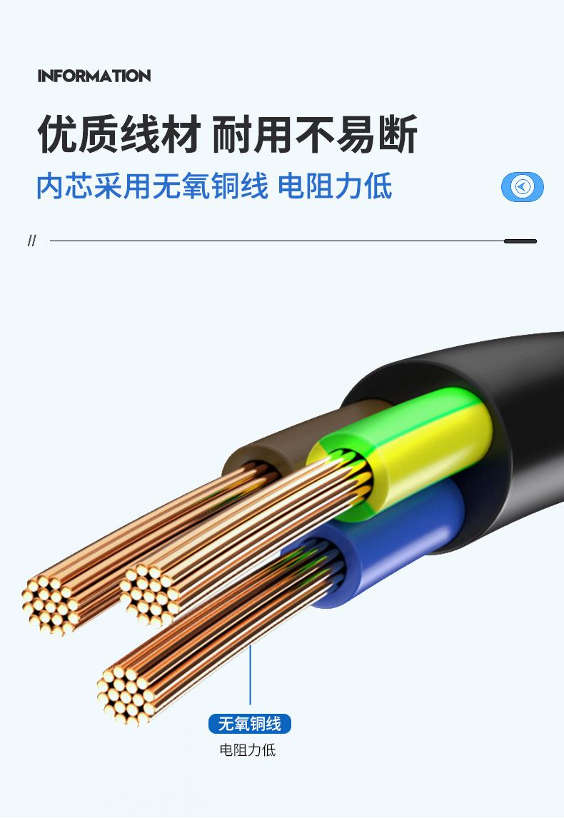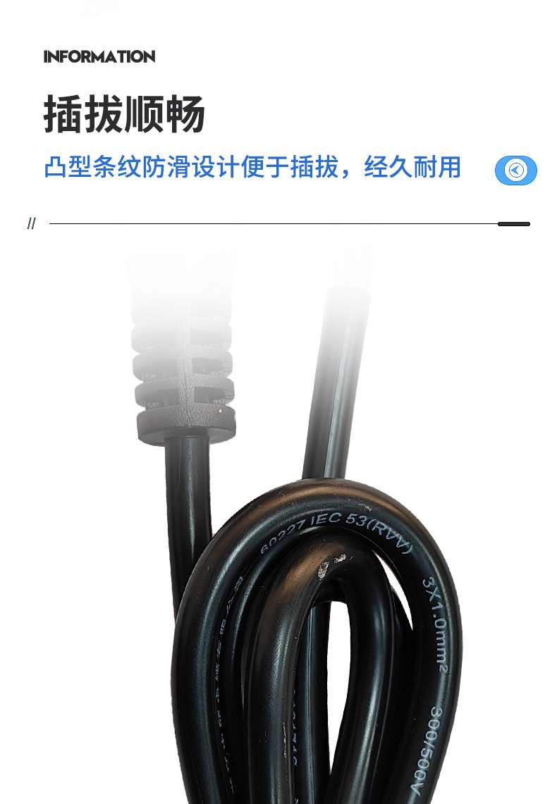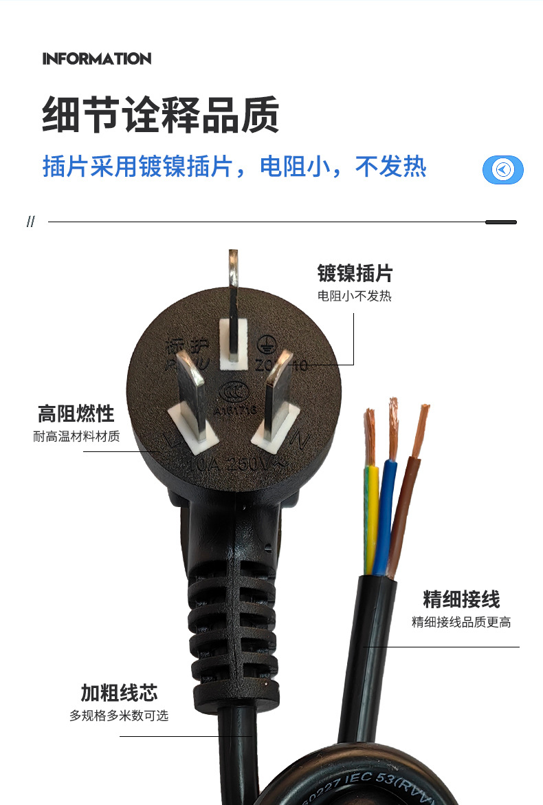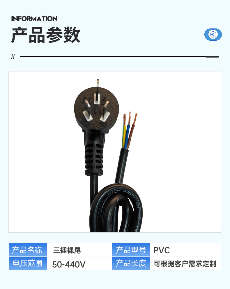 卸売り国標三ジャックプラグ線0.75/1/1.5平方品尾部上錫大電力ac電源コード