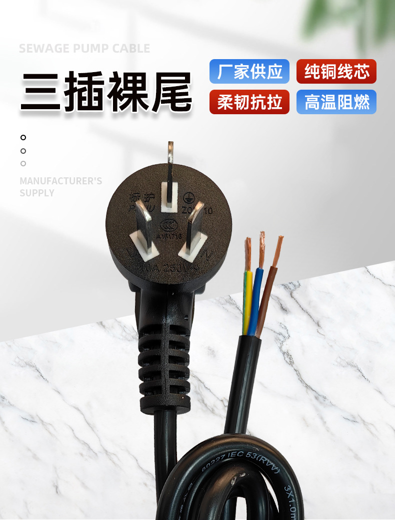 三相白雲金汚水ポンプ電源コード切断ポンプ油浸ポンプ汚水ポンプ潜水ポンプケーブルの国標