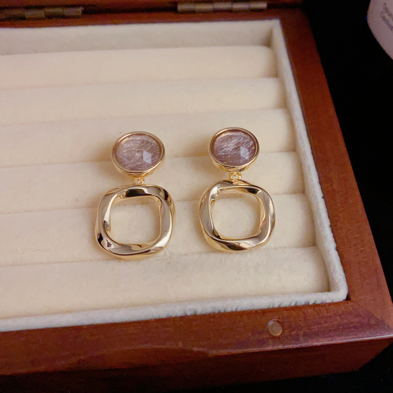 S925銀針フランスレトロファッションシンプルな金属幾何学的な四角いイヤリング