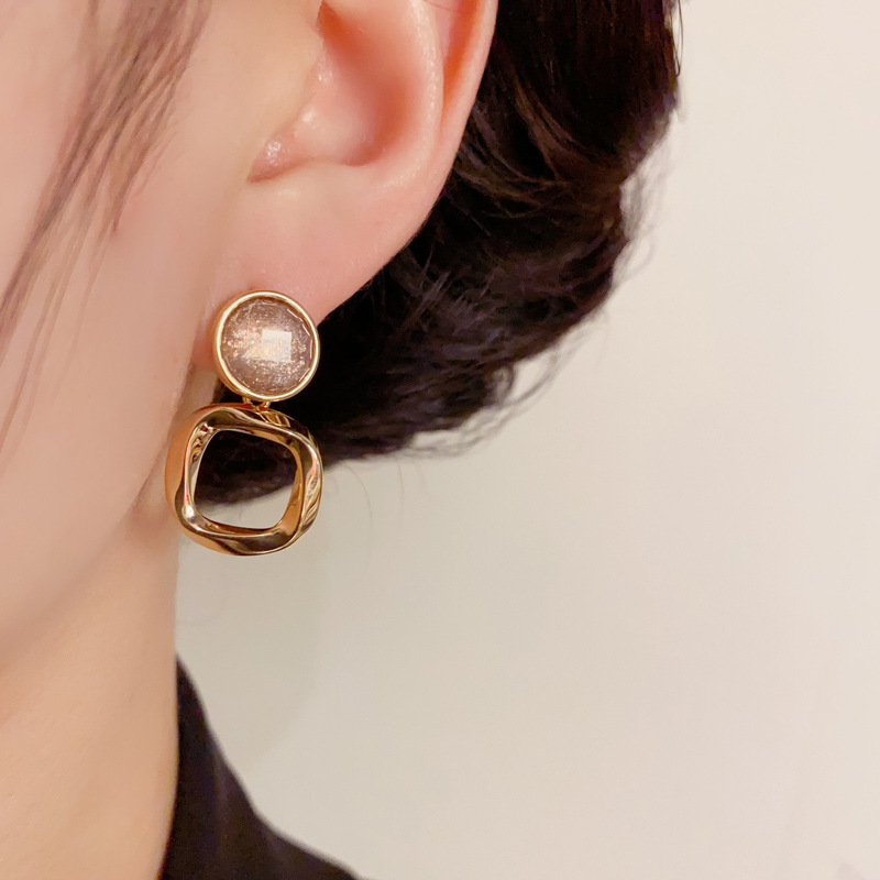 シンプルなレトロなファッションの高級感には、ドリルの金属リングのイヤリングが入っています。