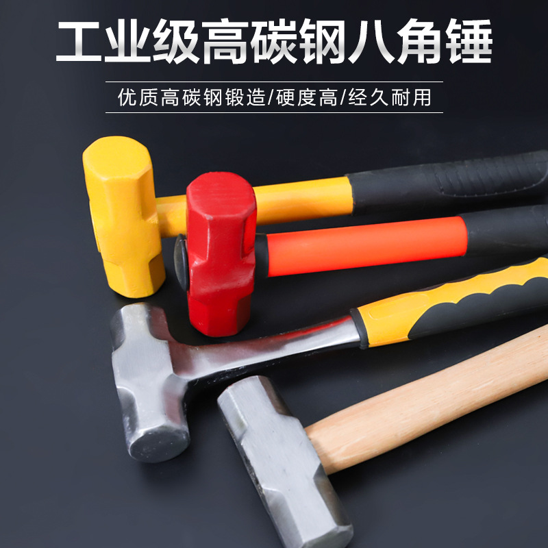 八角ハンマー角頭木柄重型壁解体建築ハンマーハンマー工具多機能石工一体ハンマー