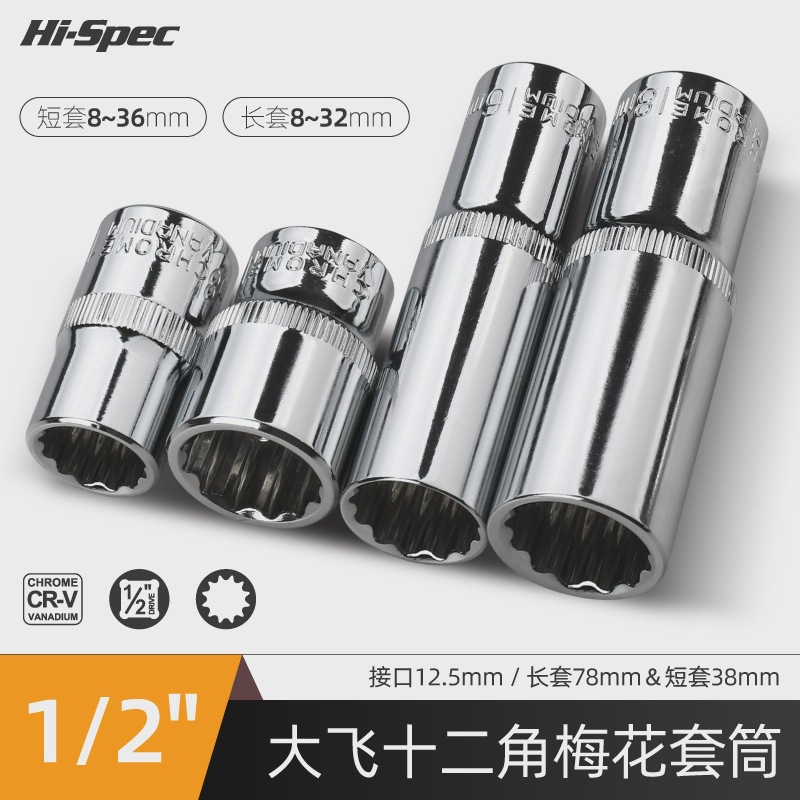 1/2梅の花の12角の筒の頭の延長の大きい飛の短いスリーブの花の鍵の形の8-32mmのパイプの頭の自動車の修理のツール