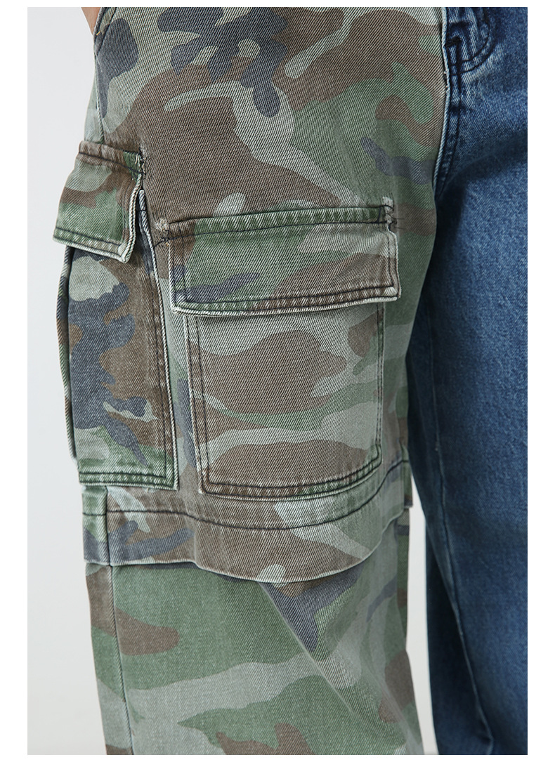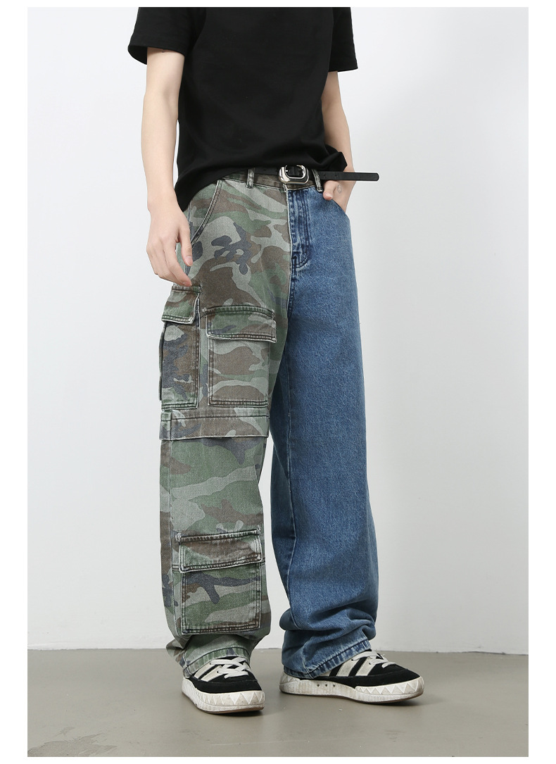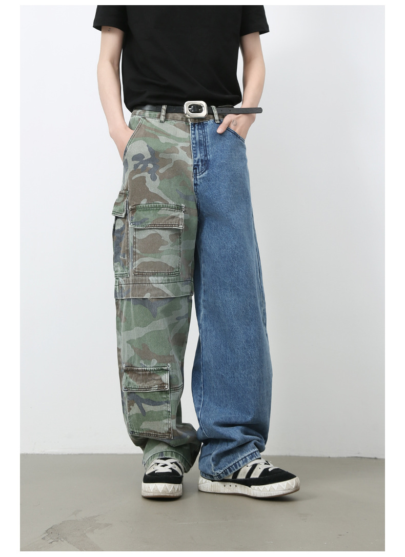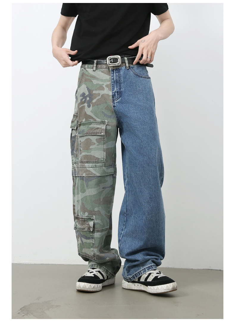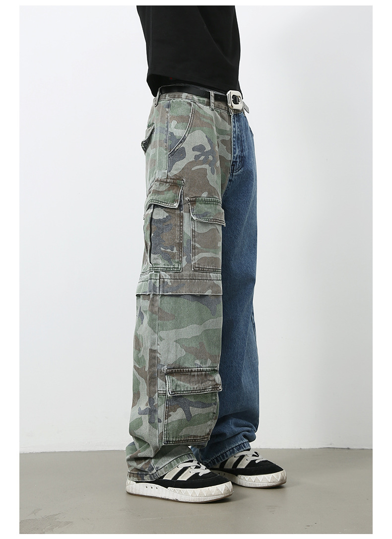Nirbenデニム | アメリカン迷彩ステッチマルチポケットナイフジーンズ男レトロハイストリートストレートオーバーオール