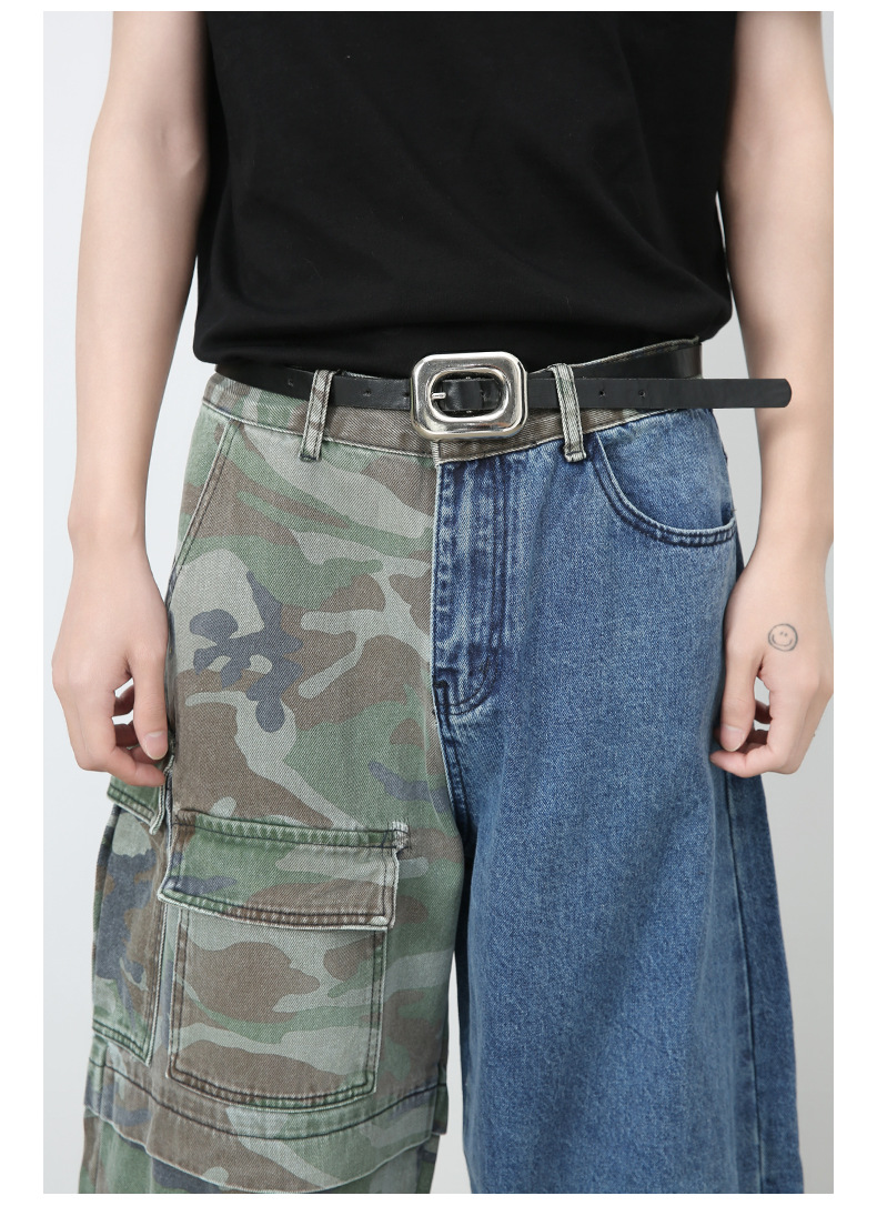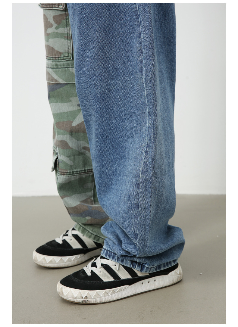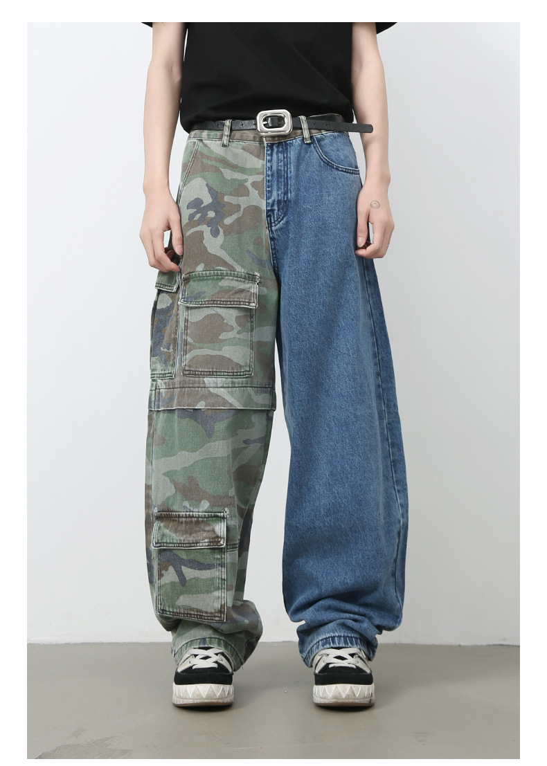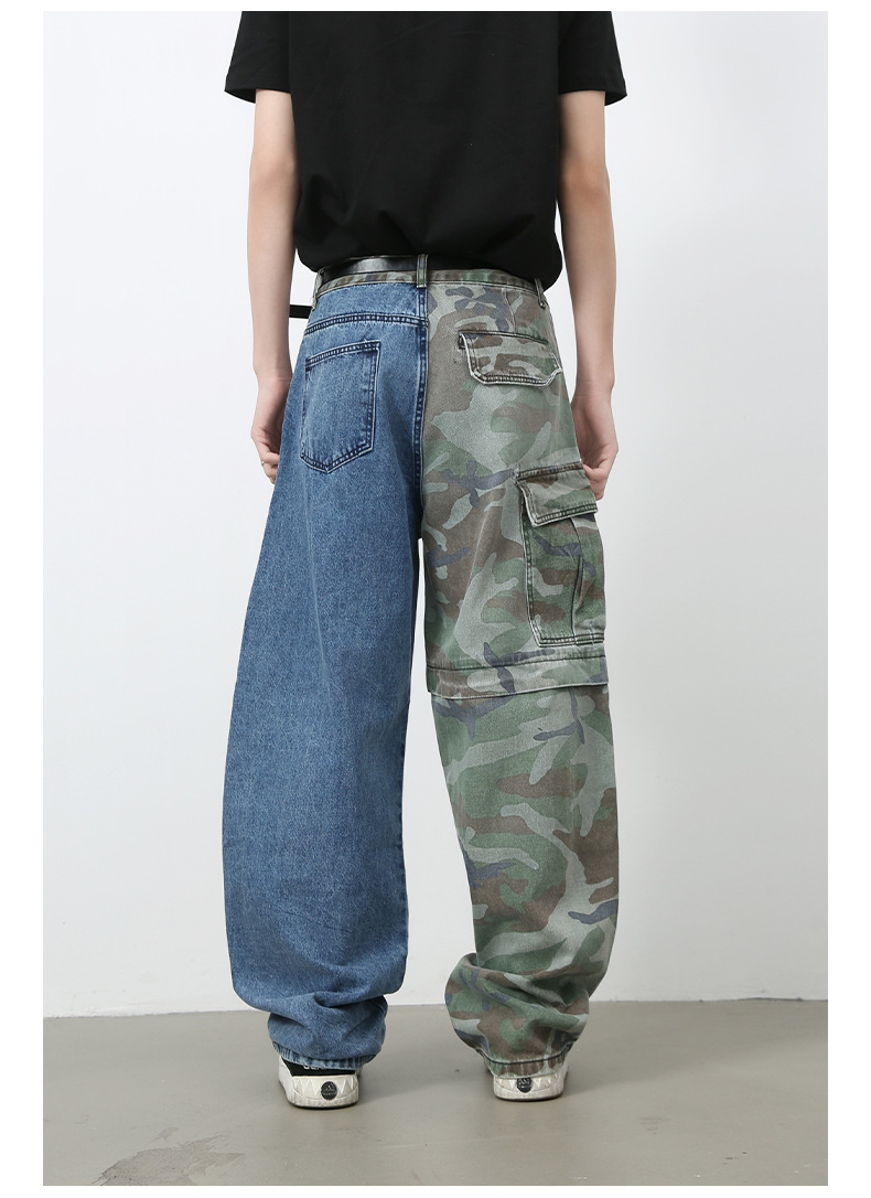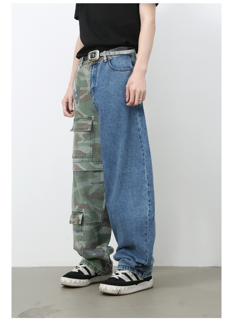 Nirbenデニム | アメリカン迷彩ステッチマルチポケットナイフジーンズ男レトロハイストリートストレートオーバーオール