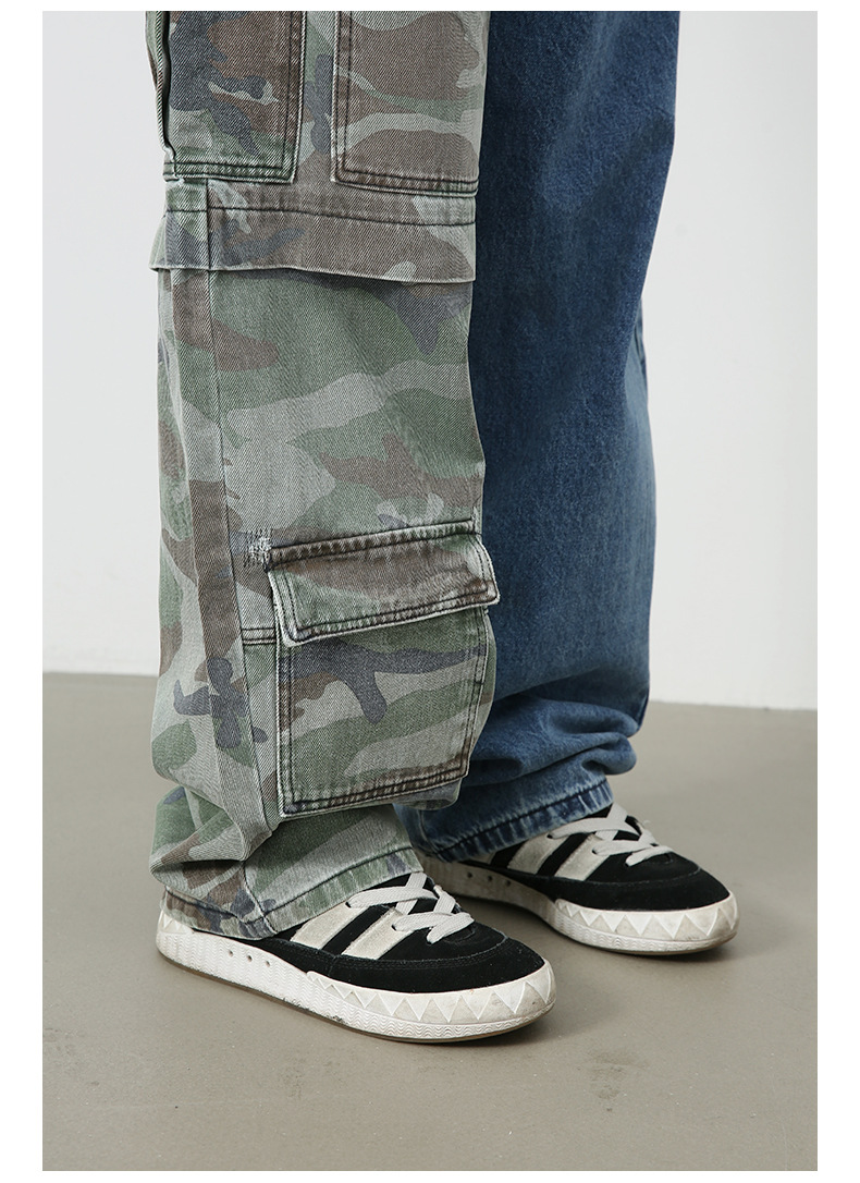 Nirbenカウボーイ | アメリカのレトロな多ポケット水洗いジーンズ男高街ゆるい直筒工装ズボン