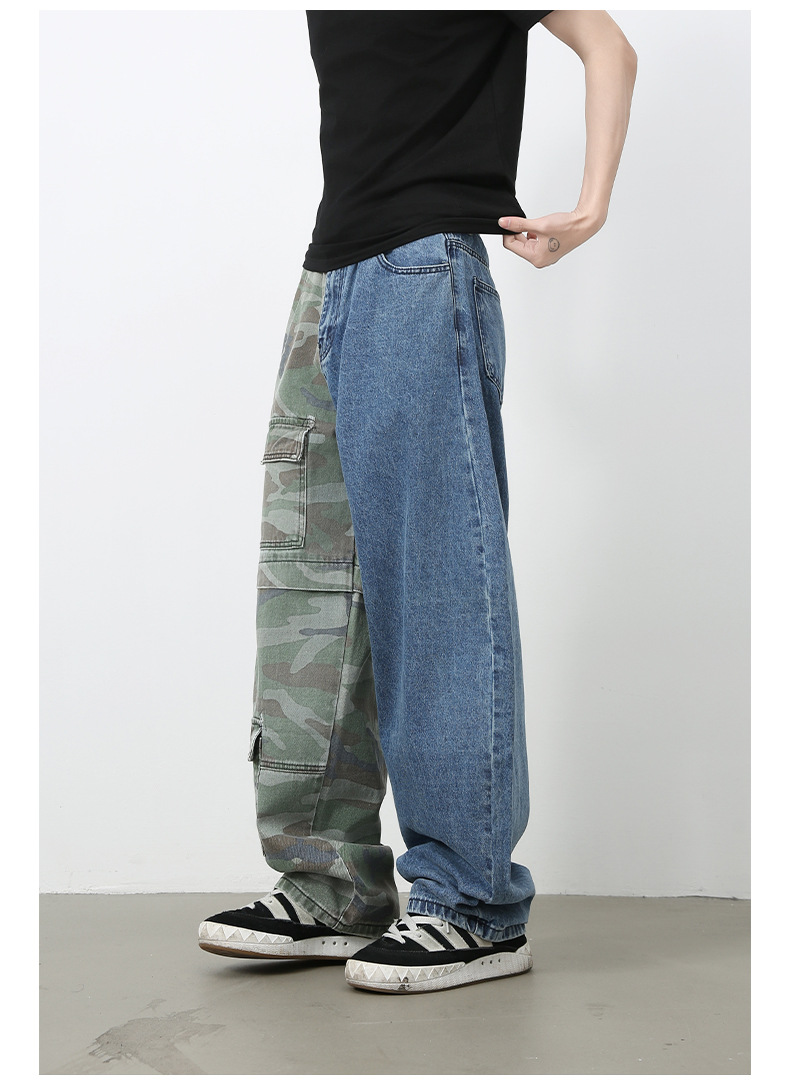 Nirbenカウボーイ | アメリカのレトロ古い手作り落書き多ポケット工装ズボン男性ゆるいカジュアルストレートパンツ