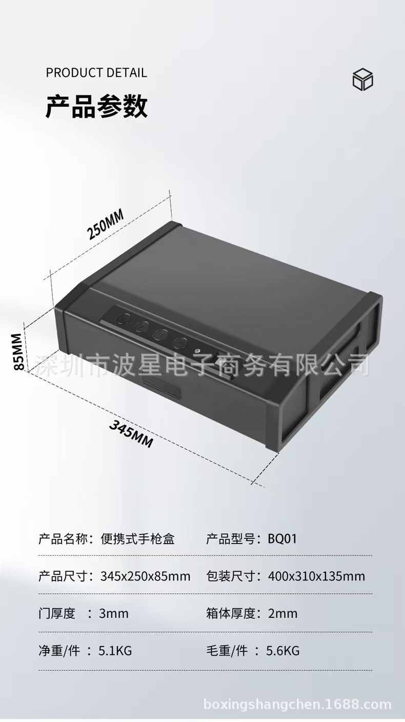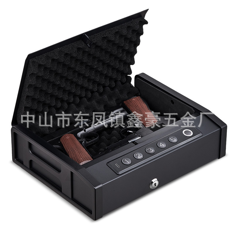 指纹密码钥匙便捷式手枪盒显示屏时间电量家用小型翻盖安全保险箱