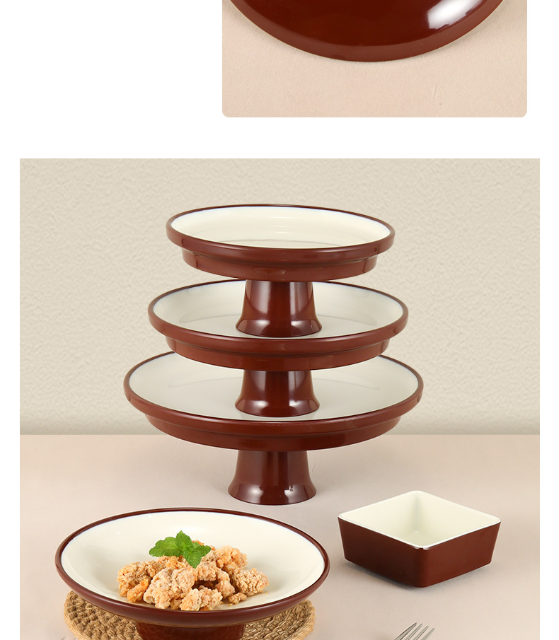 メラミン高足盤ホテルの異形盤の軽食の冷菜盤のデザートの展示盤の商業創意は磁器の食器をまねます。