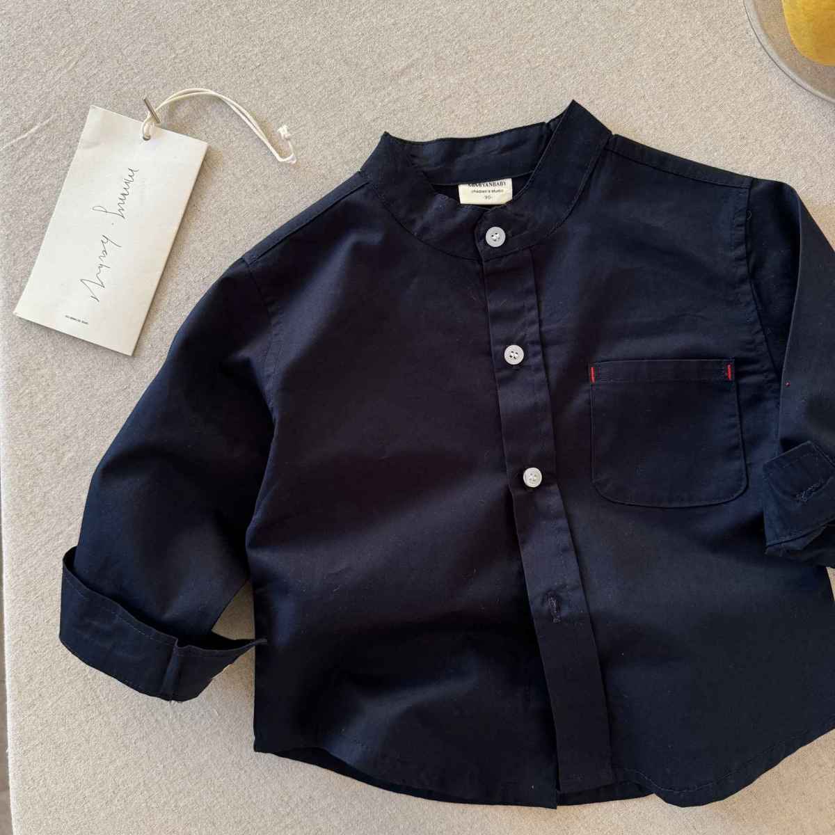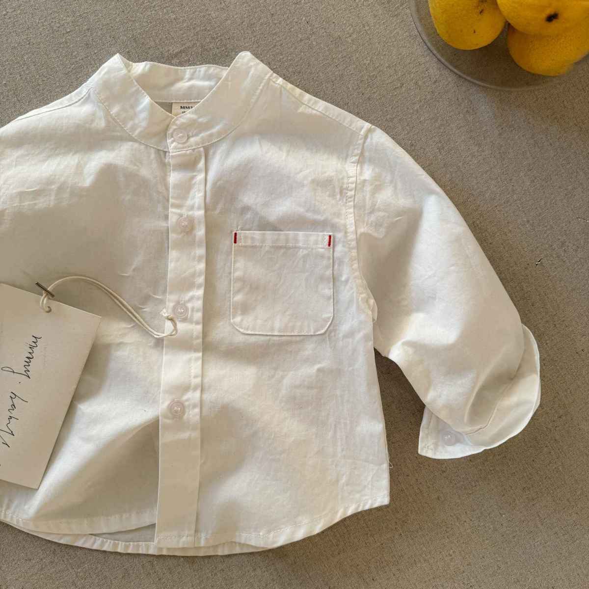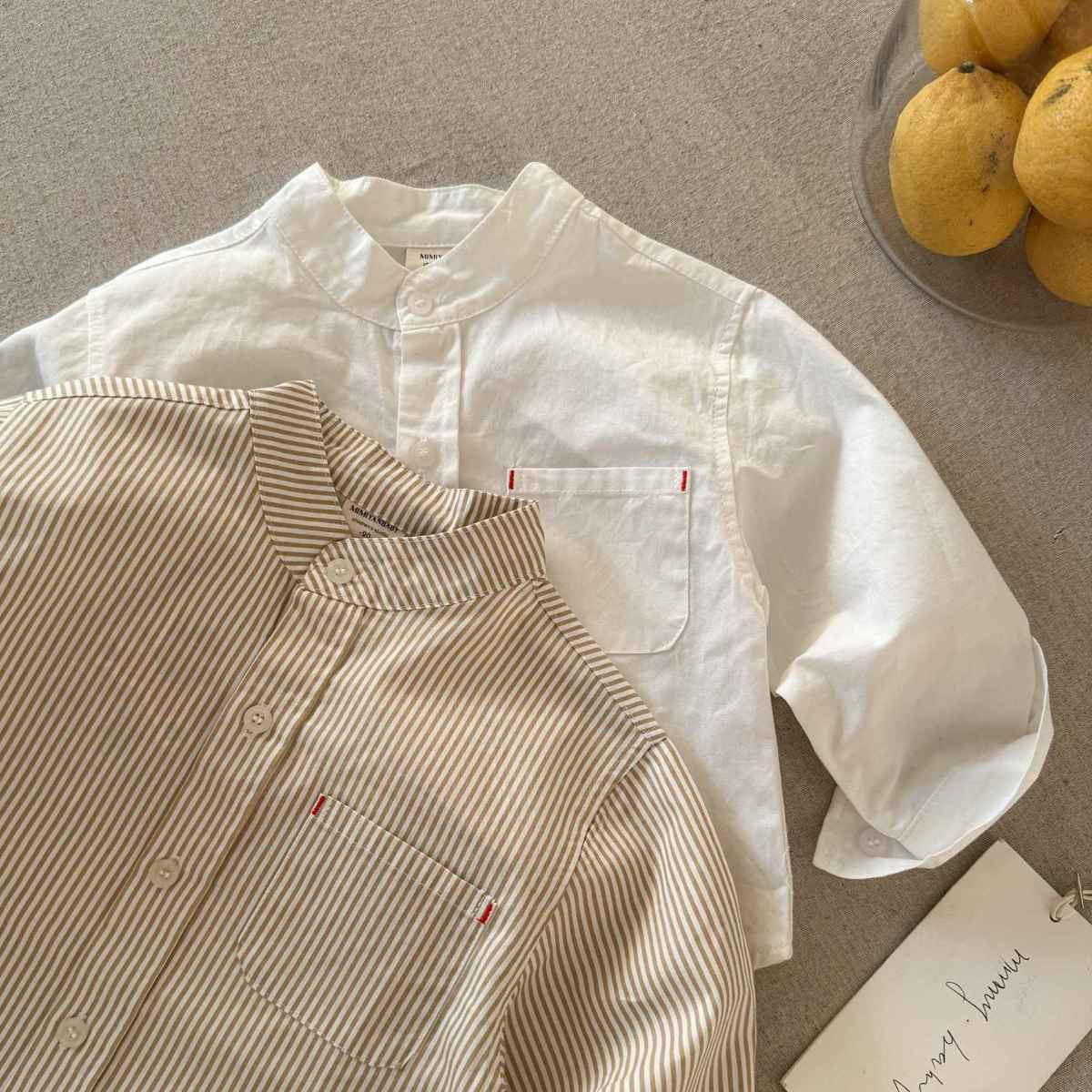 2025春の子供服男の子の子供の新しい綿のスタンドカラーの白い長袖のシャツの上着の卸売りは代行します。