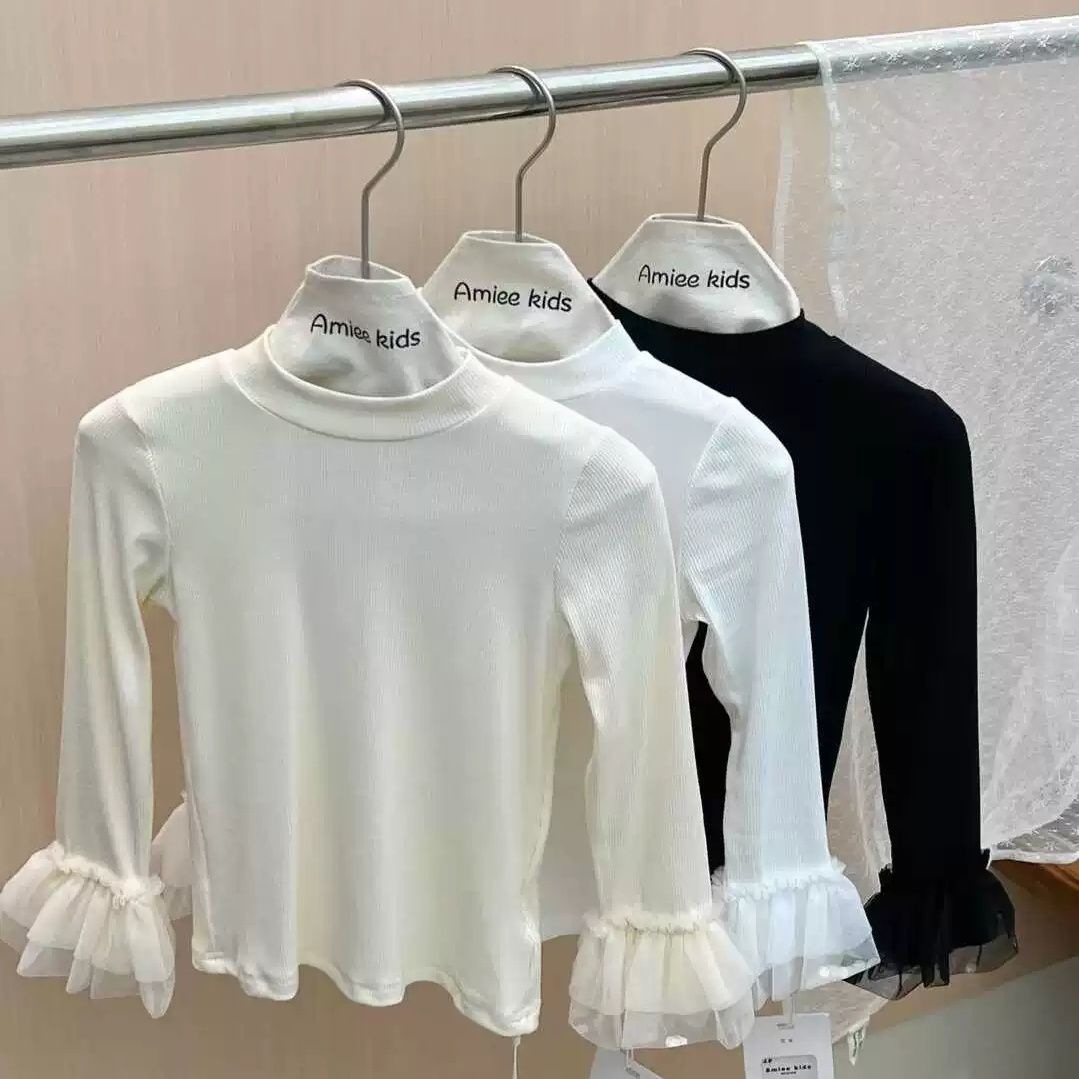 春と秋の女の子の子供服のtシャツの赤ちゃんの洋気の子供の個性の潮の韓国版のレースのラッパの袖の流行の底のシャツ
