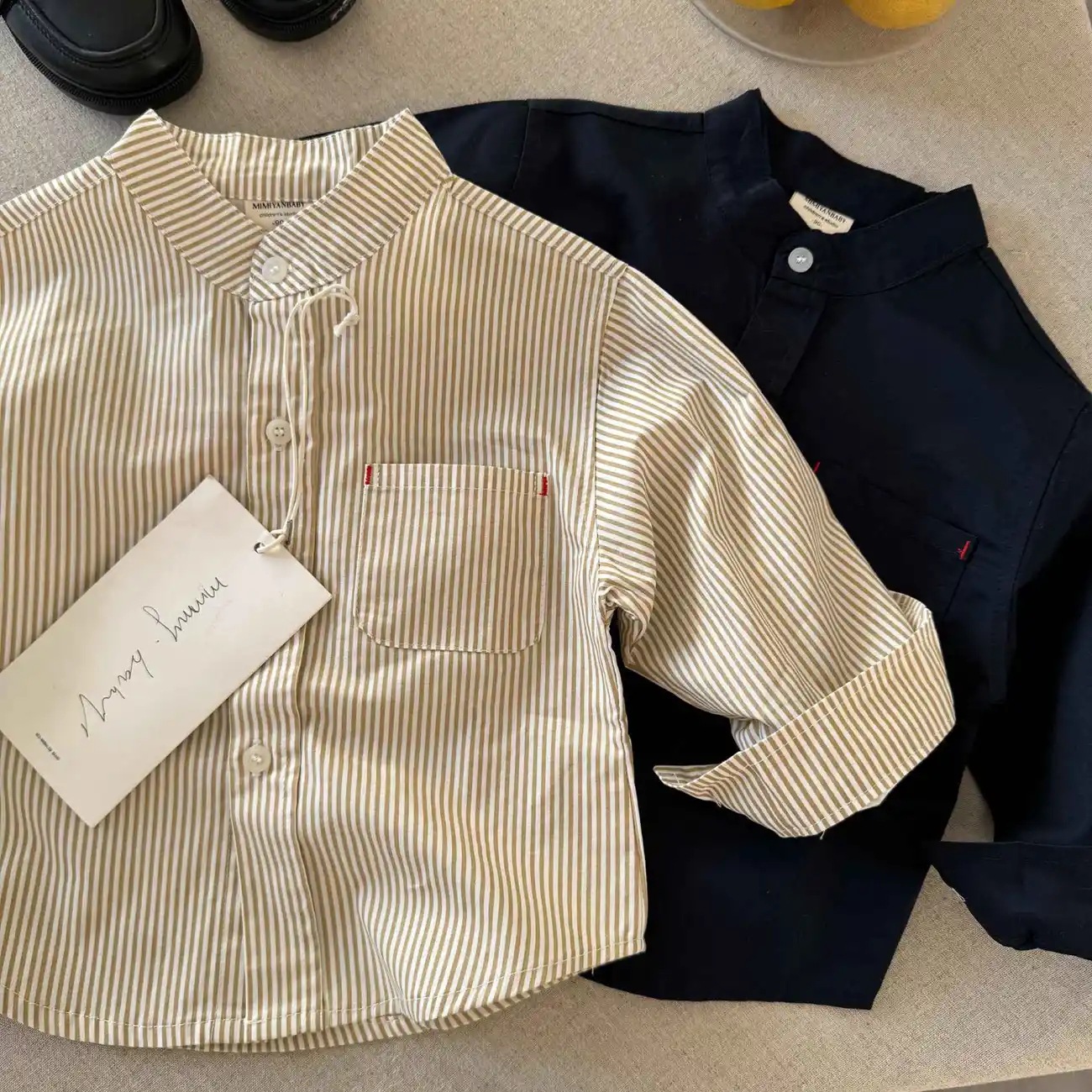 儿童春季衬衫2025新款男女童条纹上衣纯色宝宝口袋白衬衣休闲