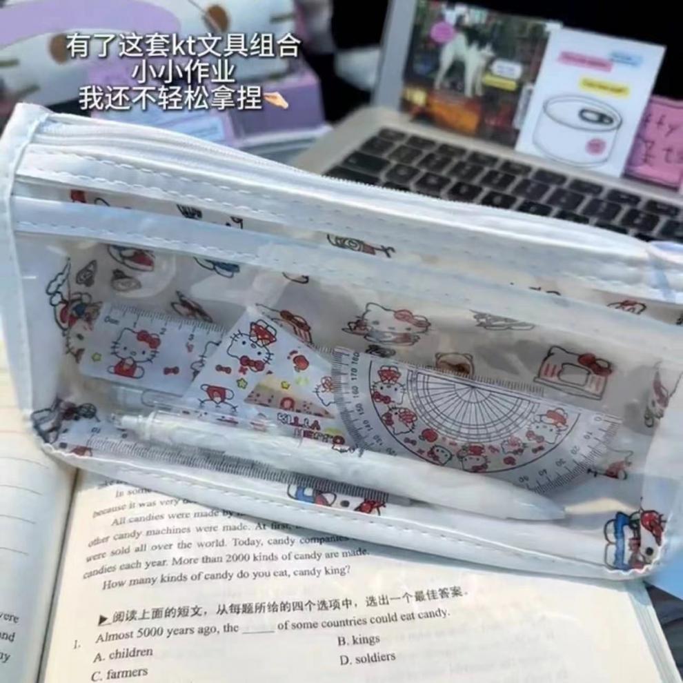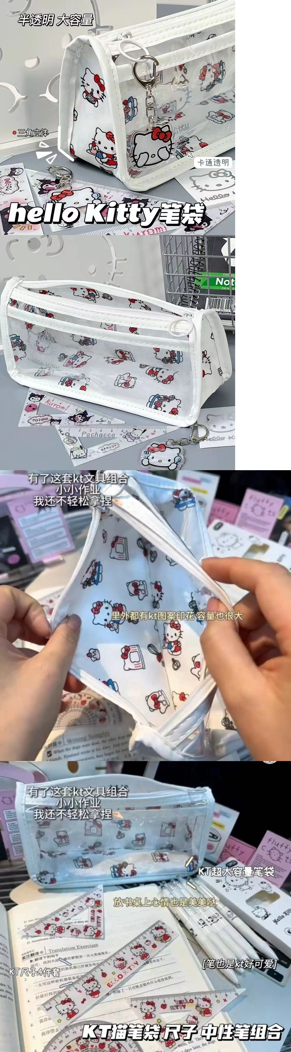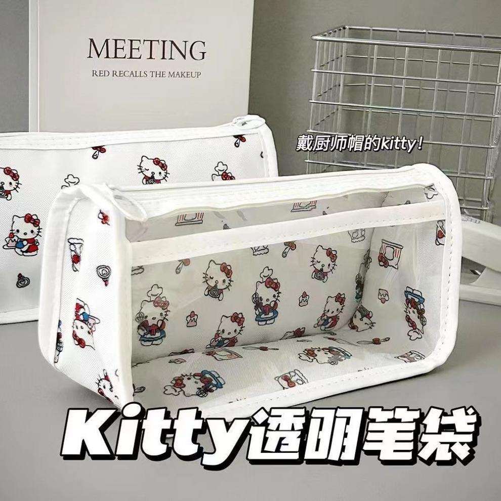 小紅書透明Kitty筆袋ins高颜値多層学生大容量文房具収納袋