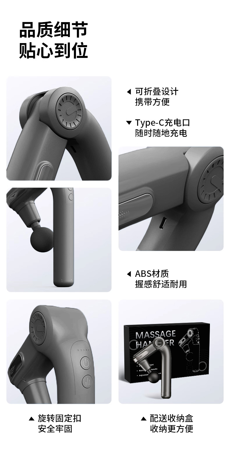 新品智能电动筋膜枪可折叠伸缩按摩捶高频震动深层放松肌肉按摩器