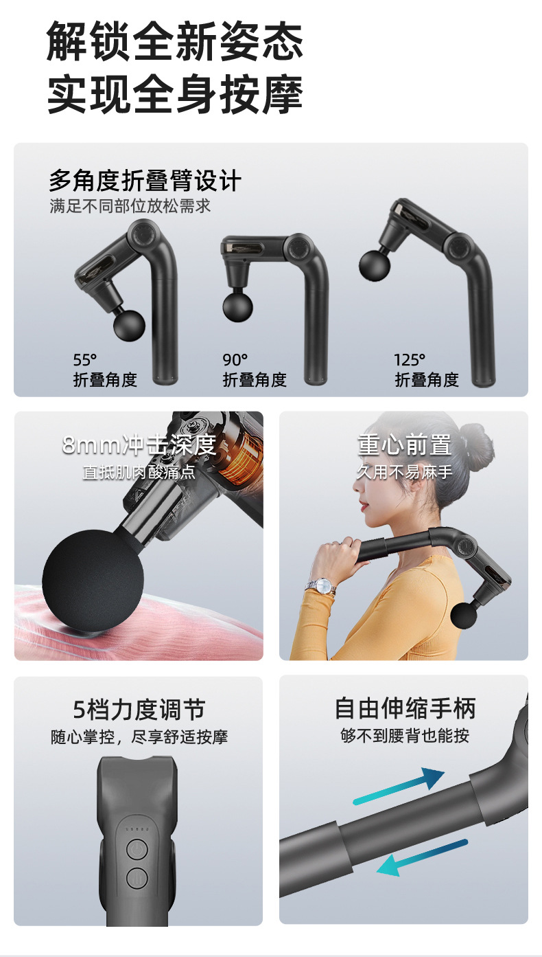 国境を越えた新型電動筋膜銃家庭用折り畳み可能な伸縮深層リラックス筋肉多機能頚椎マッサージ銃