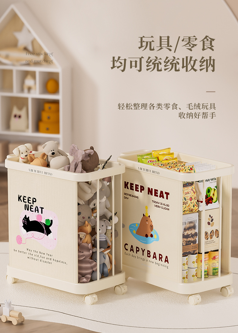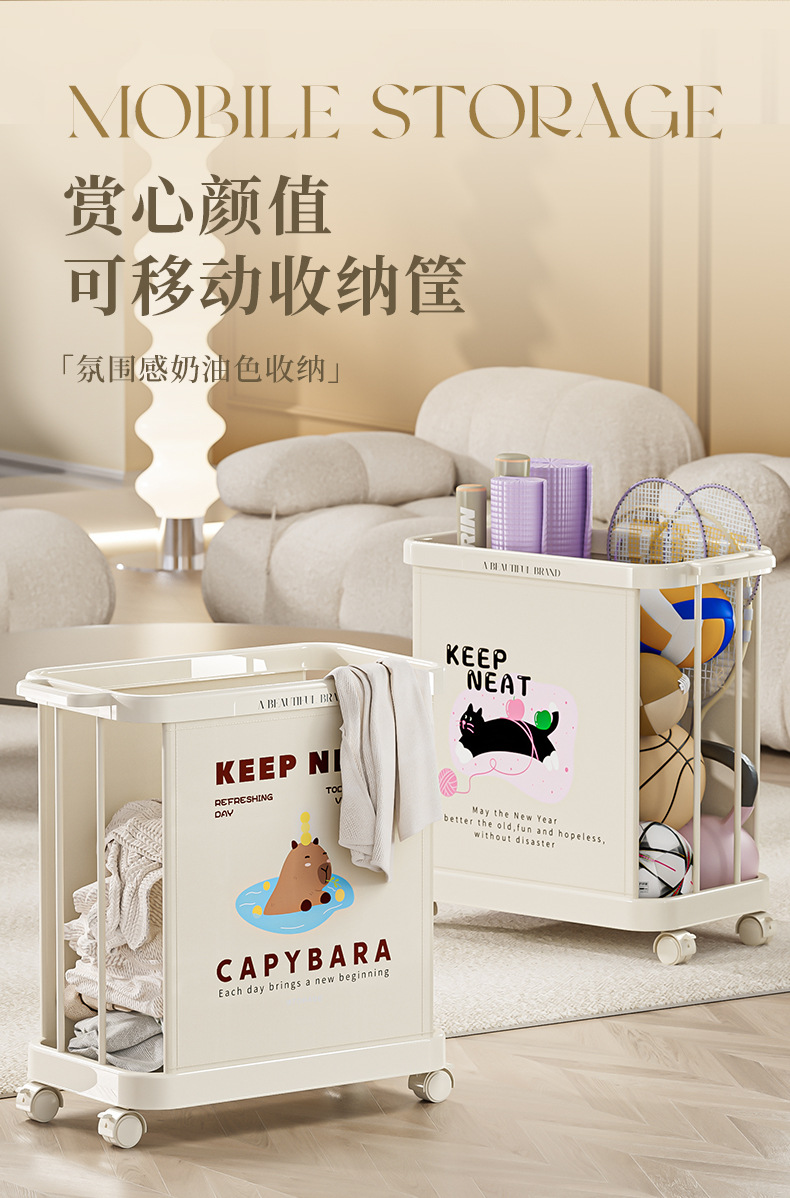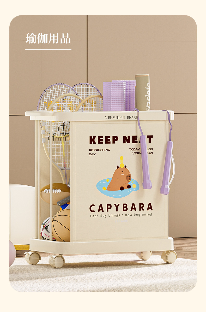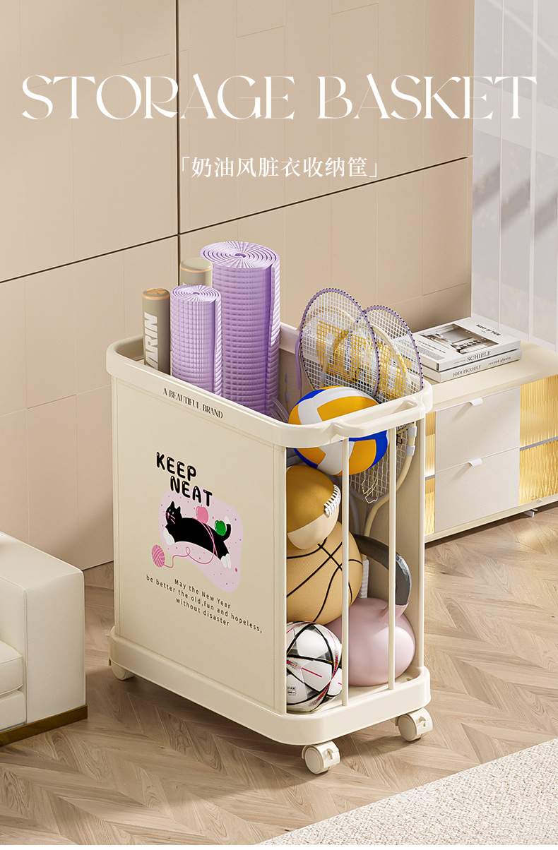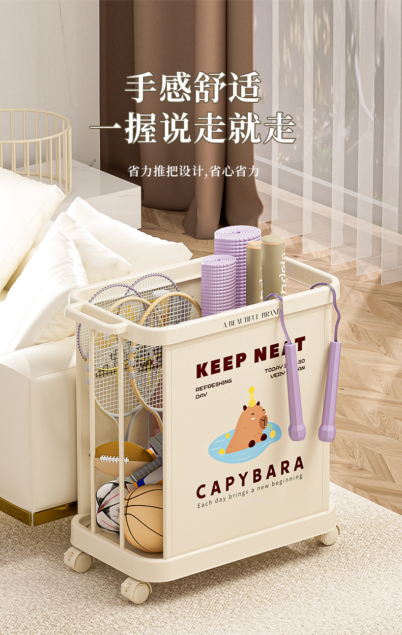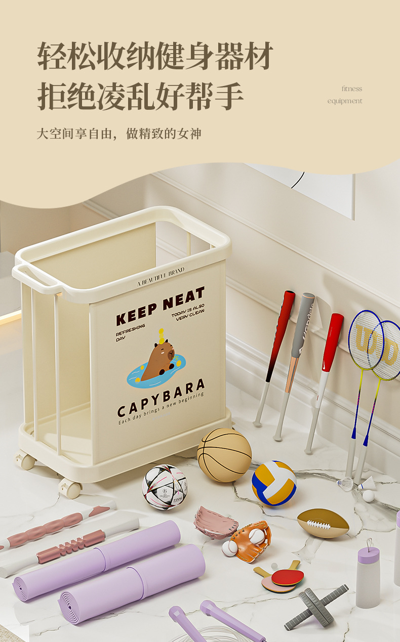 高颜値移動式洗濯かごヨガマット収納かごフィットネス器材棚間食玩具整理