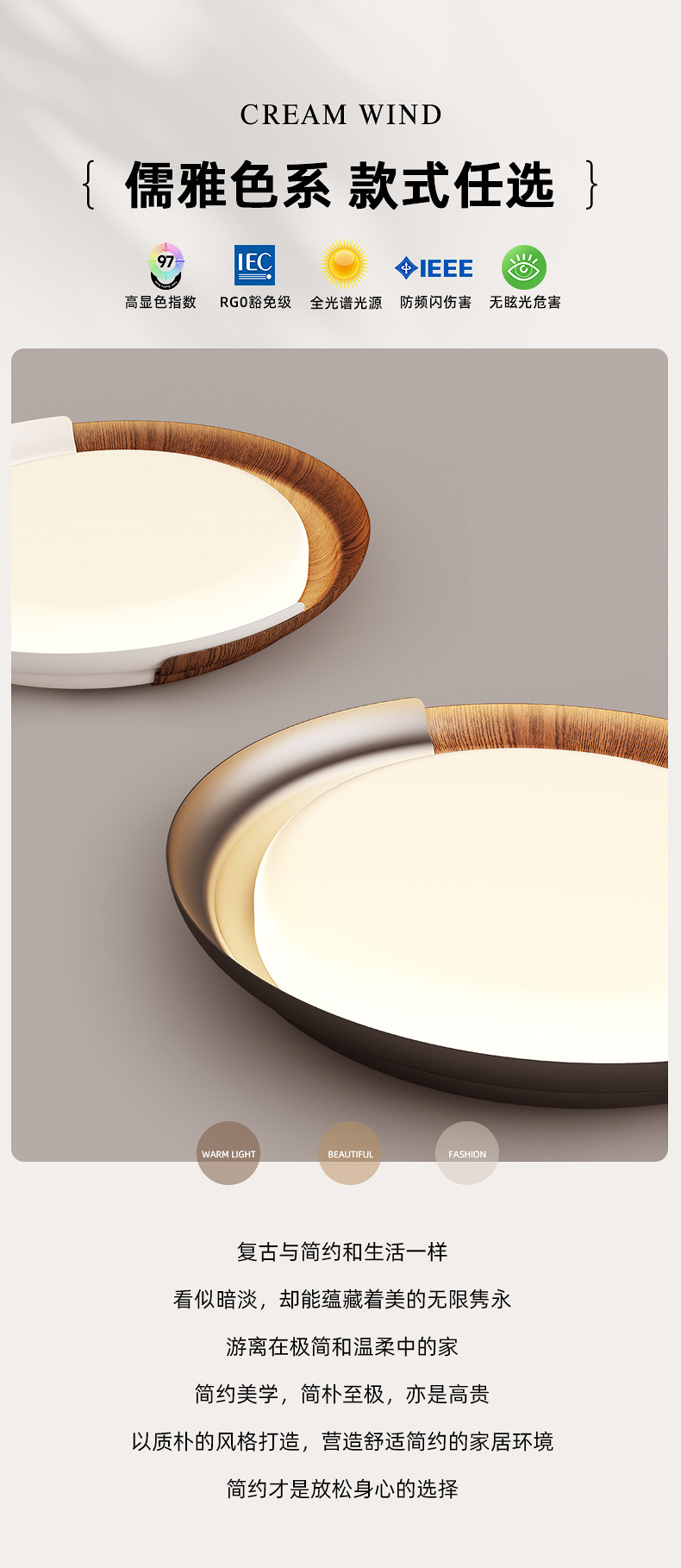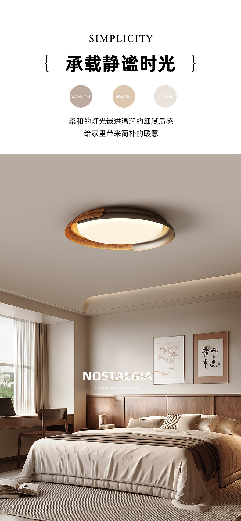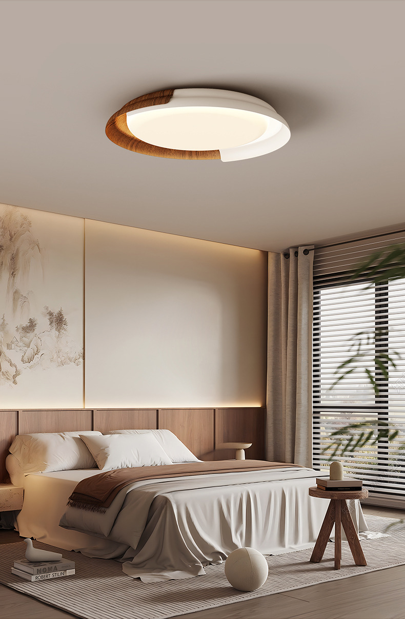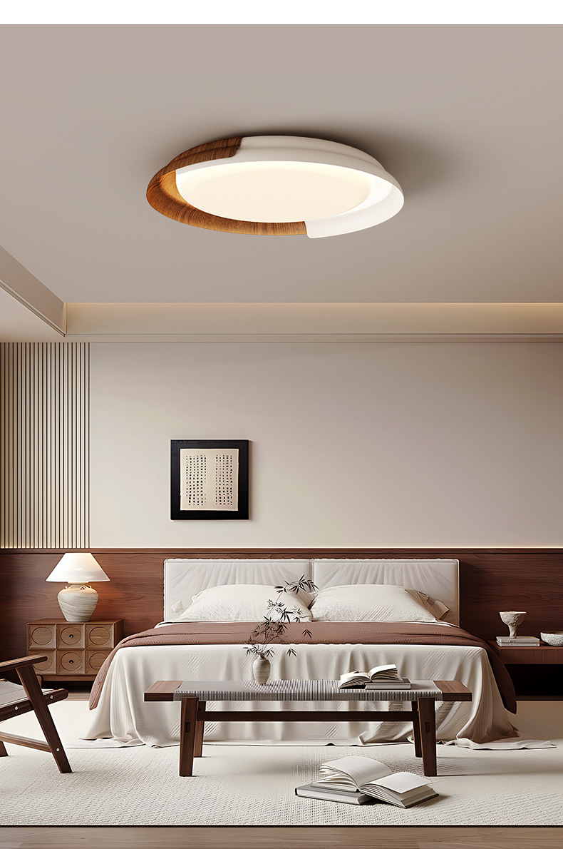 寝室の天井灯の中古の暗い風の胡桃木の色の全スペクトルは目を保護して簡単に円形の家庭の本の部屋の照明器具を保護します。