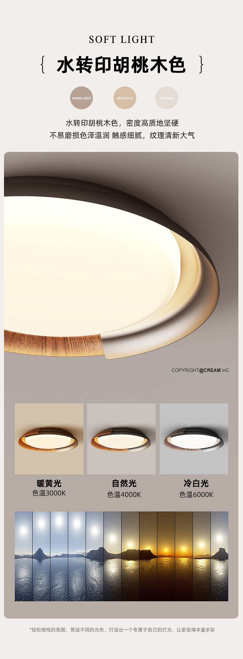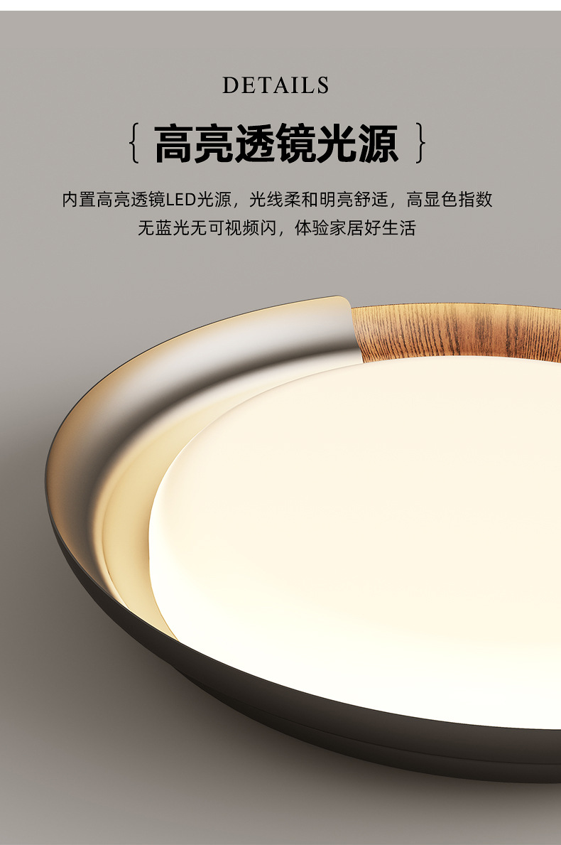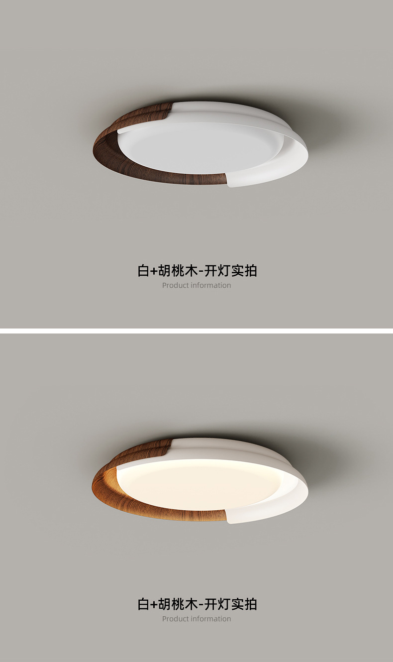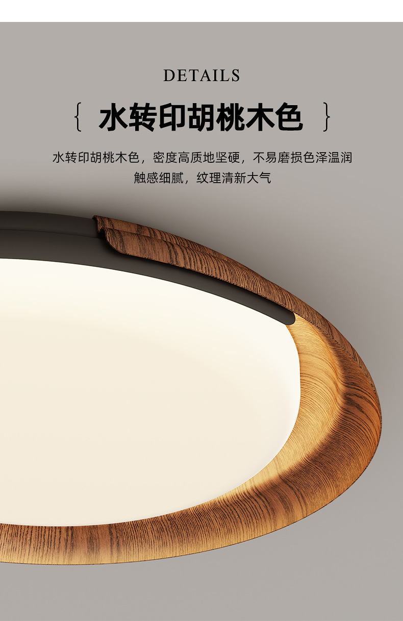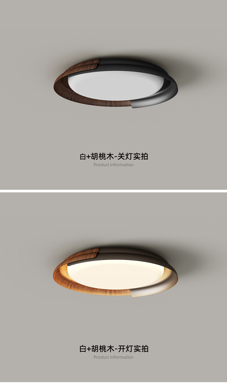 寝室の天井灯の中古の暗い風の胡桃木の色の全スペクトルは目を保護して簡単に円形の家庭の本の部屋の照明器具を保護します。