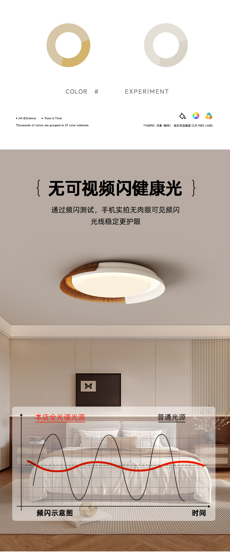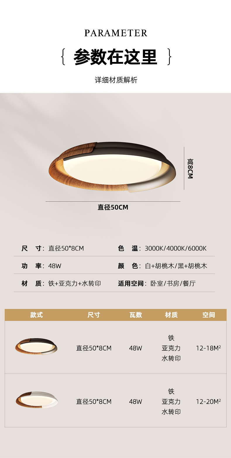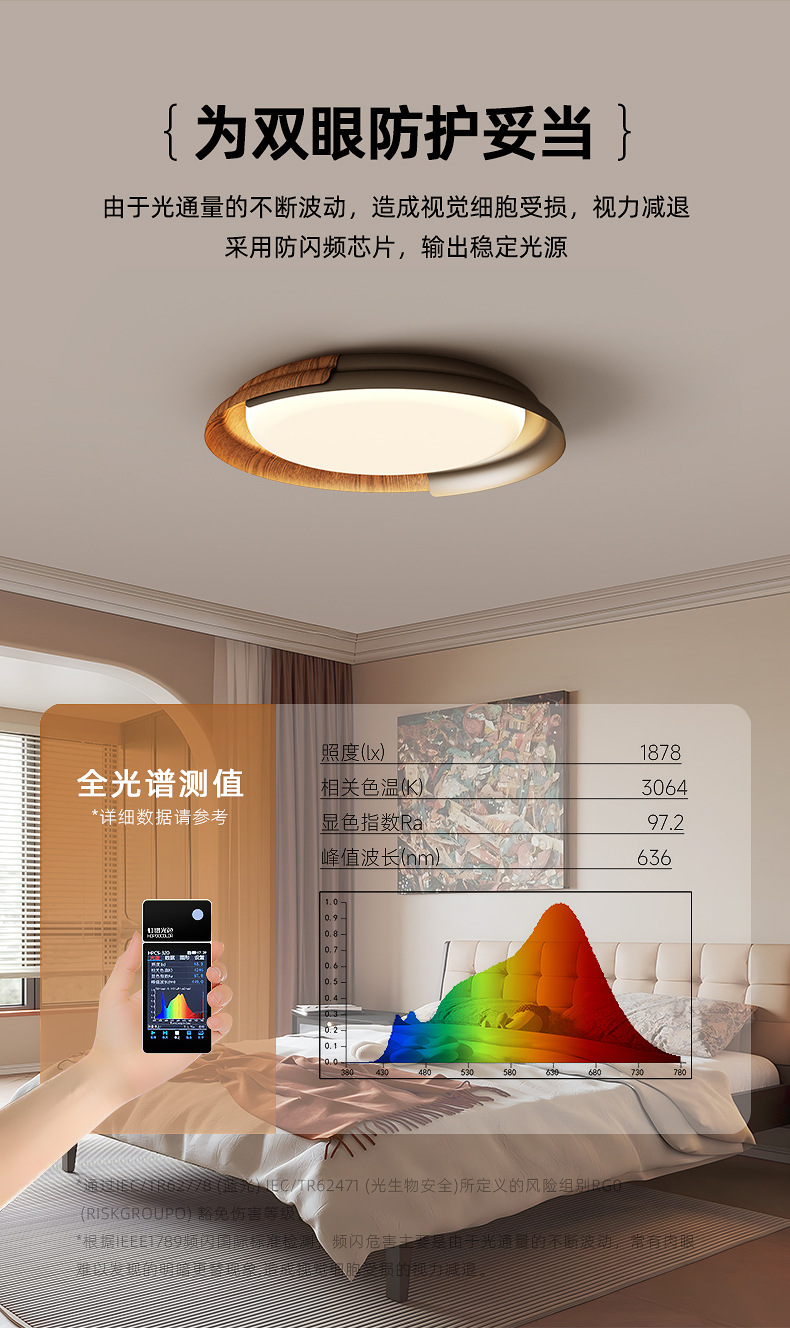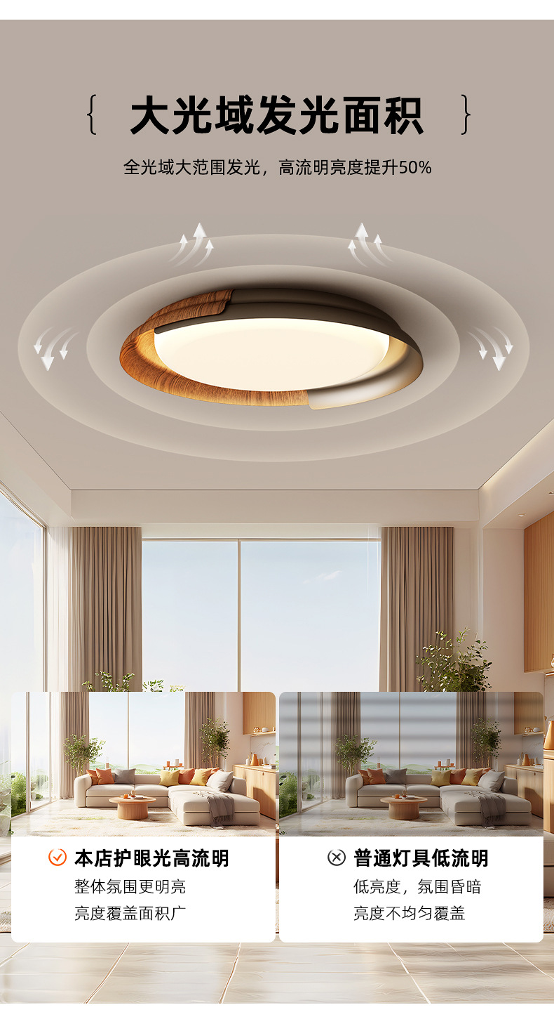 寝室の天井灯の中古の暗い風の胡桃木の色の全スペクトルは目を保護して簡単に円形の家庭の本の部屋の照明器具を保護します。