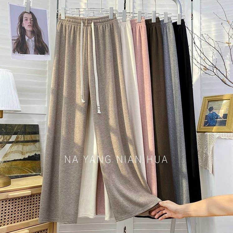 糯米小羊绒阔腿裤女秋冬新款针织加厚垂感长裤百搭高腰显瘦直筒裤