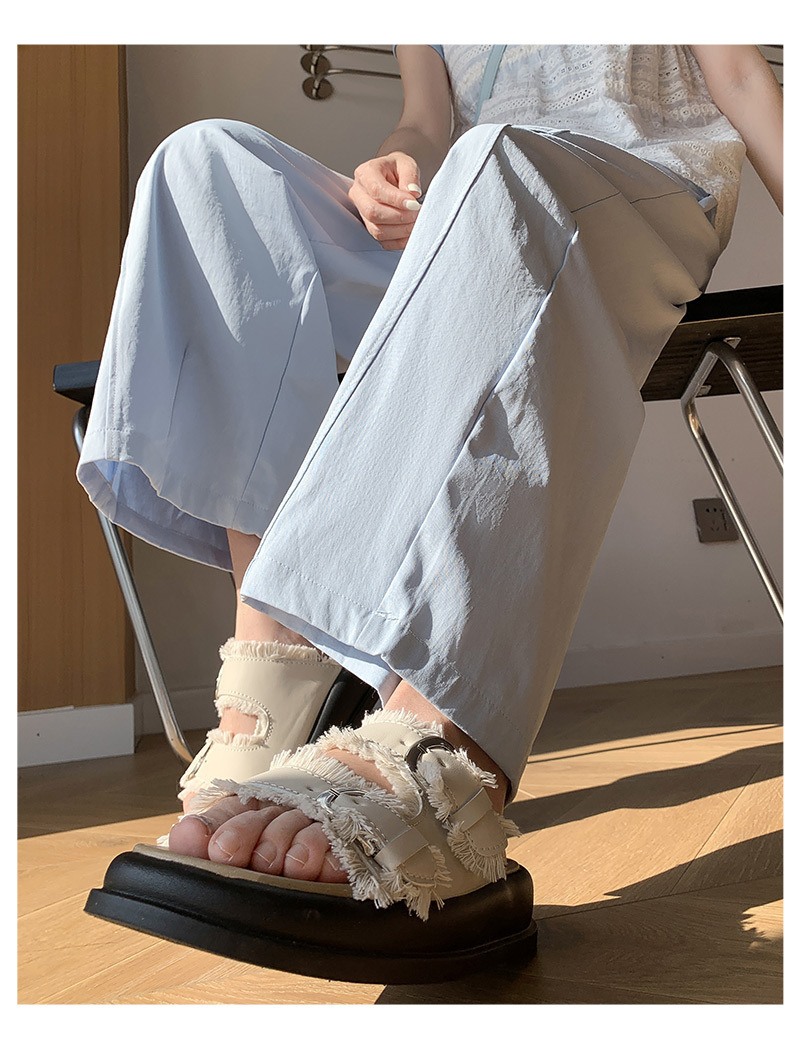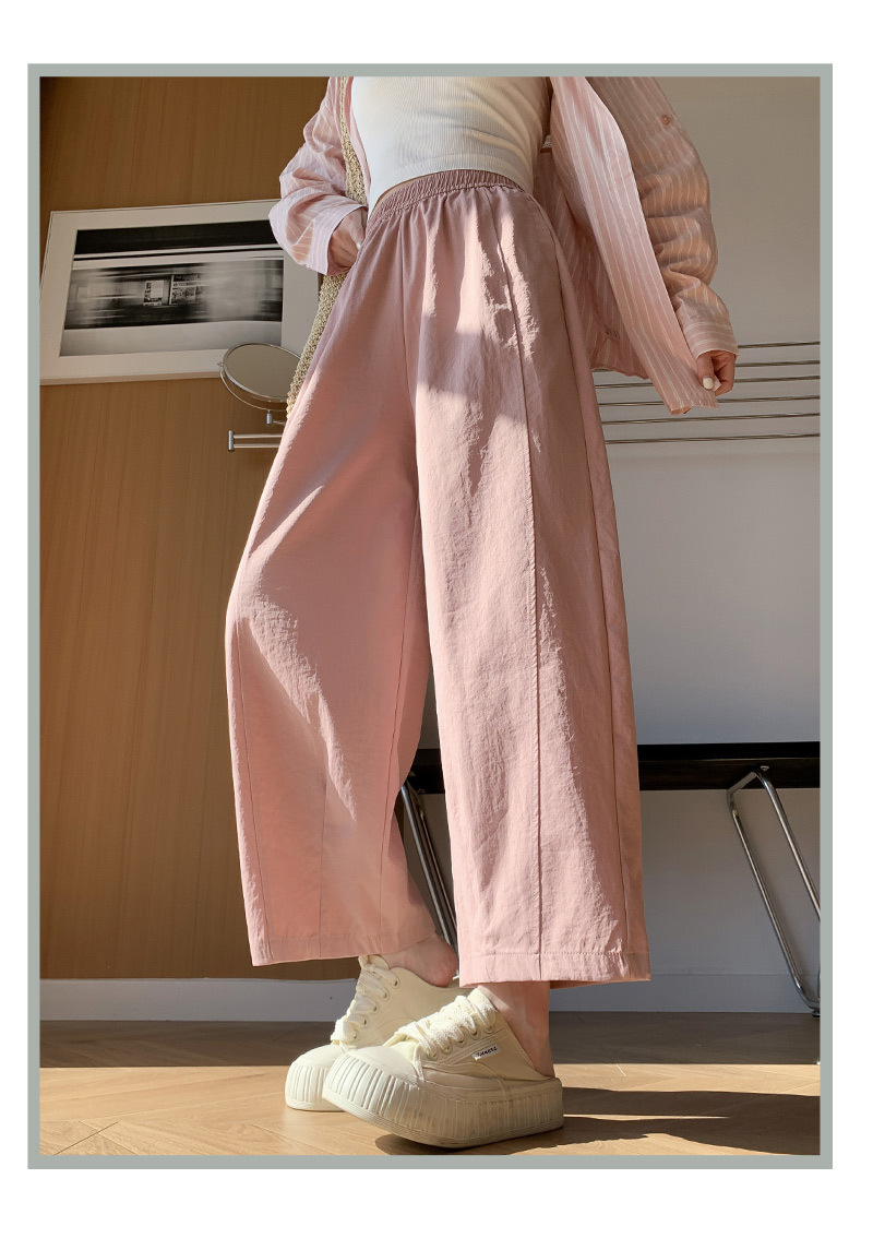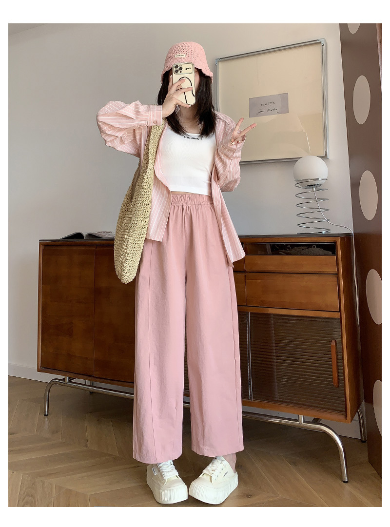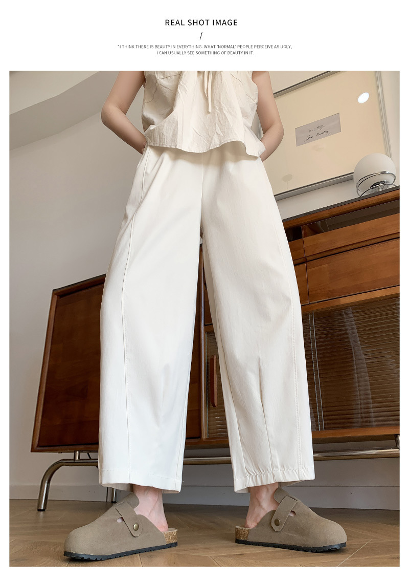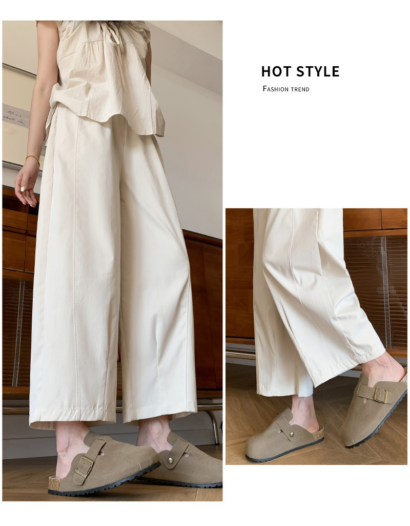 白乳芙山本広脚ズボン女性春夏2025新型高腰垂感酢酸怠惰風氷糸カジュアルパンツ