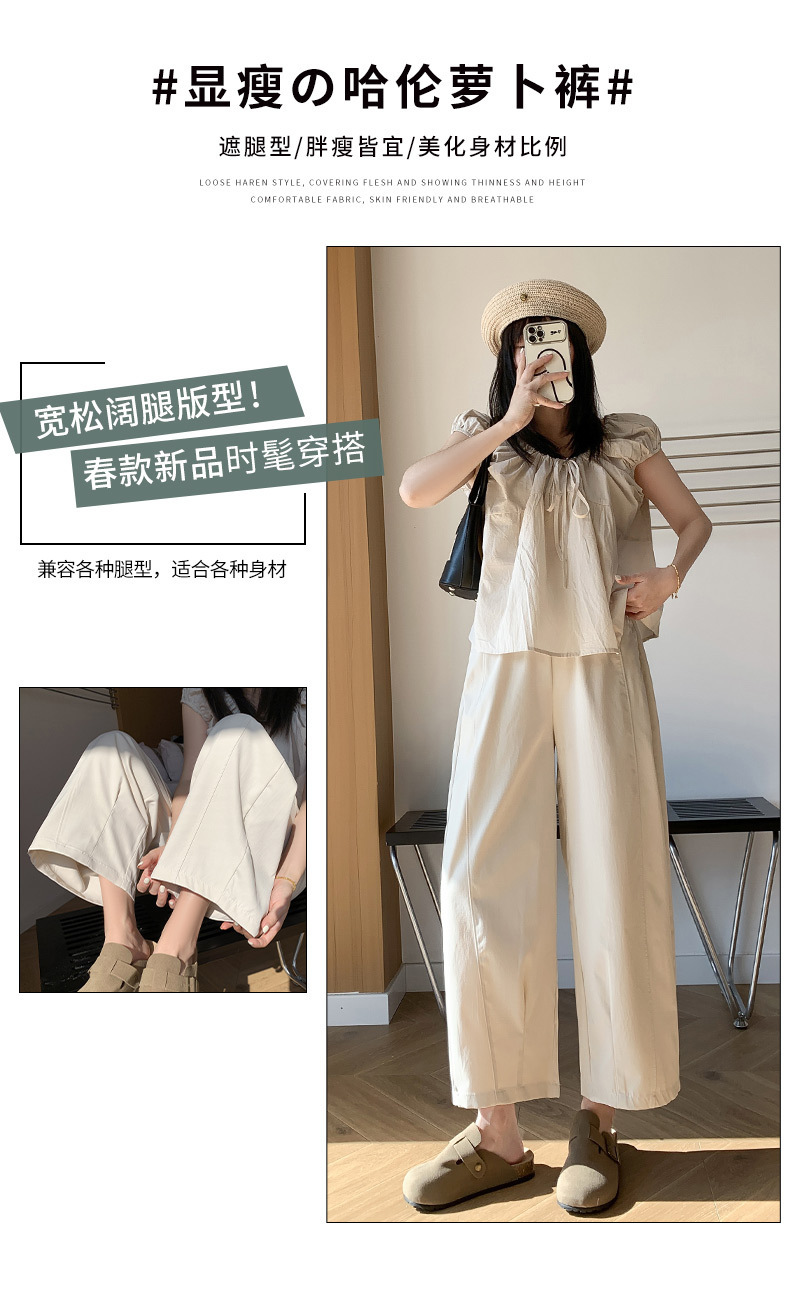 ドレープのあるカジュアルなスタイルのクリームムースキャロットパンツ、女性用、25春夏新作、ゆったりとしたハイウエスト、小柄な人向けのカジュアルなハーレムパンツ