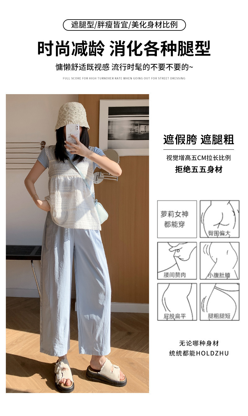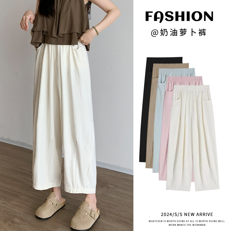 氷糸の小柄なダイコンのズボンの女性の夏の2025新型のハロンの9分のズボンの日系のまっすぐな筒の酢酸のおばあさんのズボン