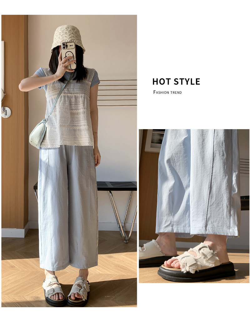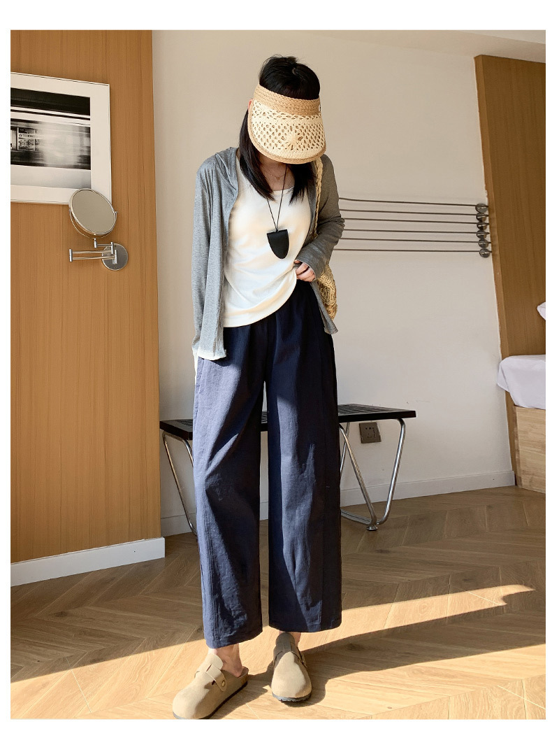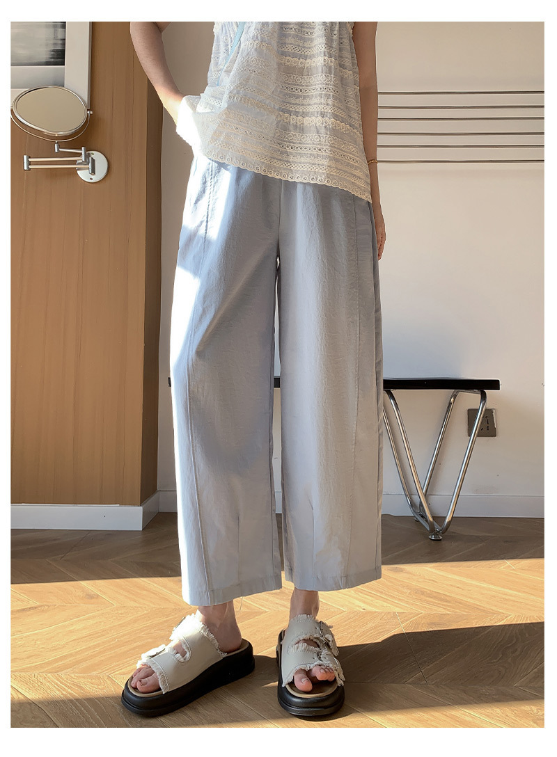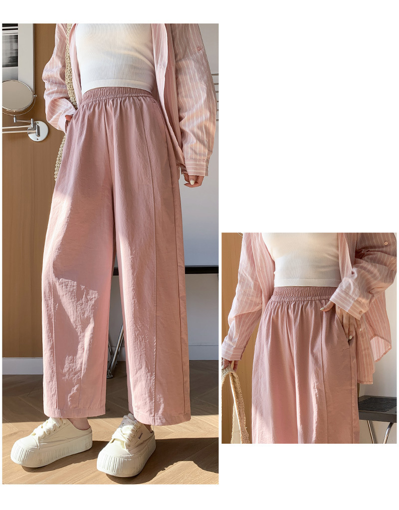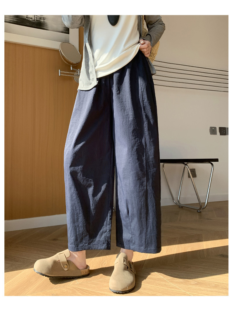 氷の糸のしわの広腿のズボンの女性の夏の薄い金の韓国版の高い腰のカジュアルなまっすぐな筒の怠惰な綿の麻のしわの山本の禅の意のズボン