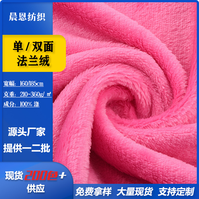 现货单面双面珊瑚绒布料法兰绒服装玩具毛毯面料批发服装吸水布