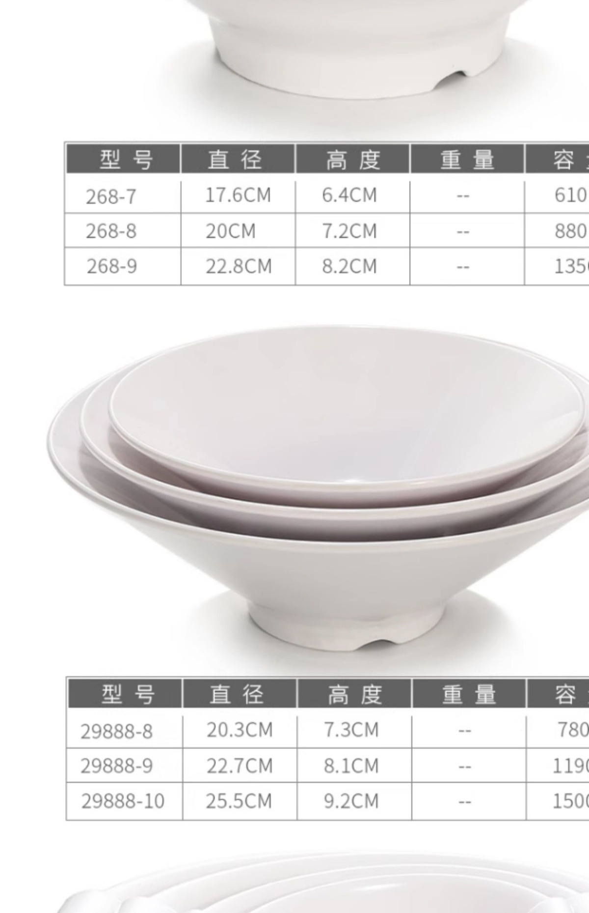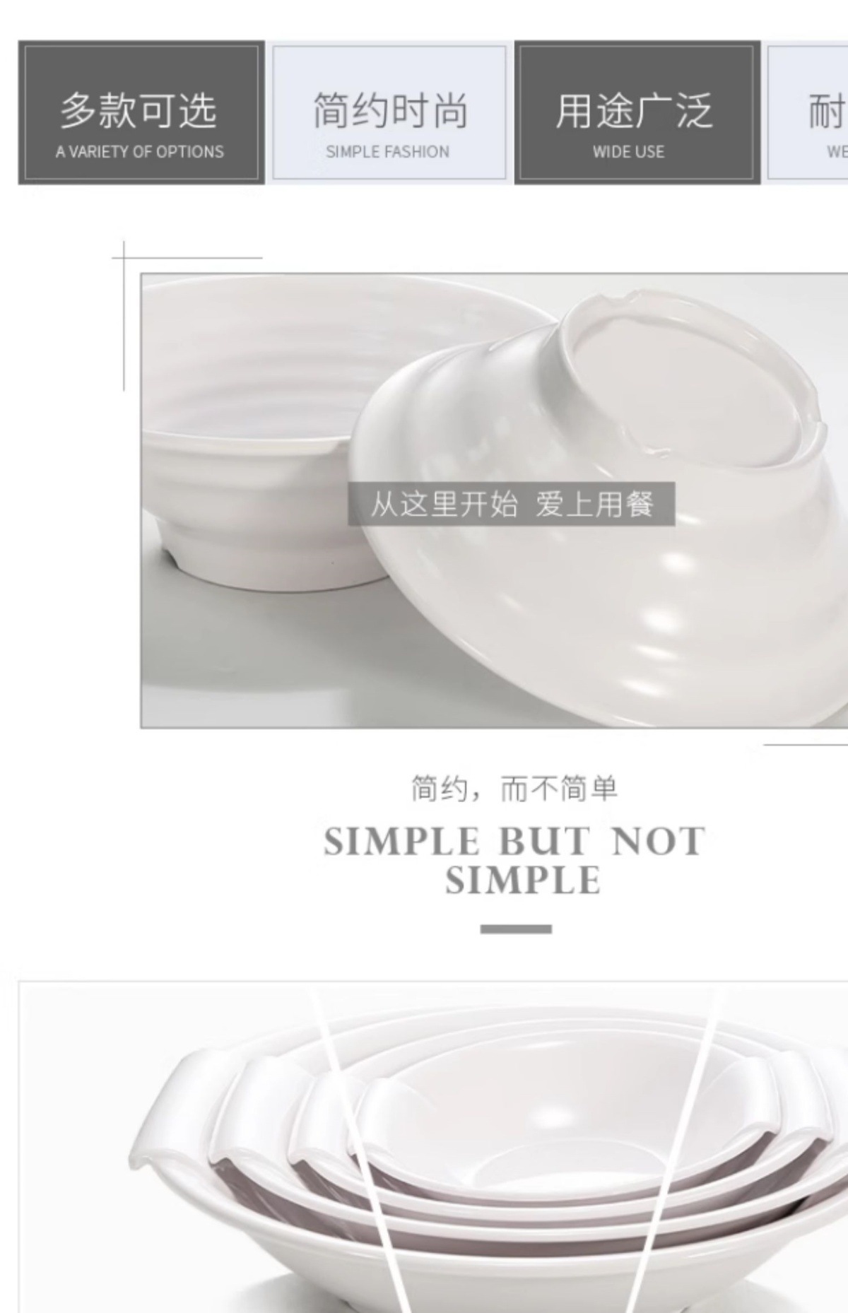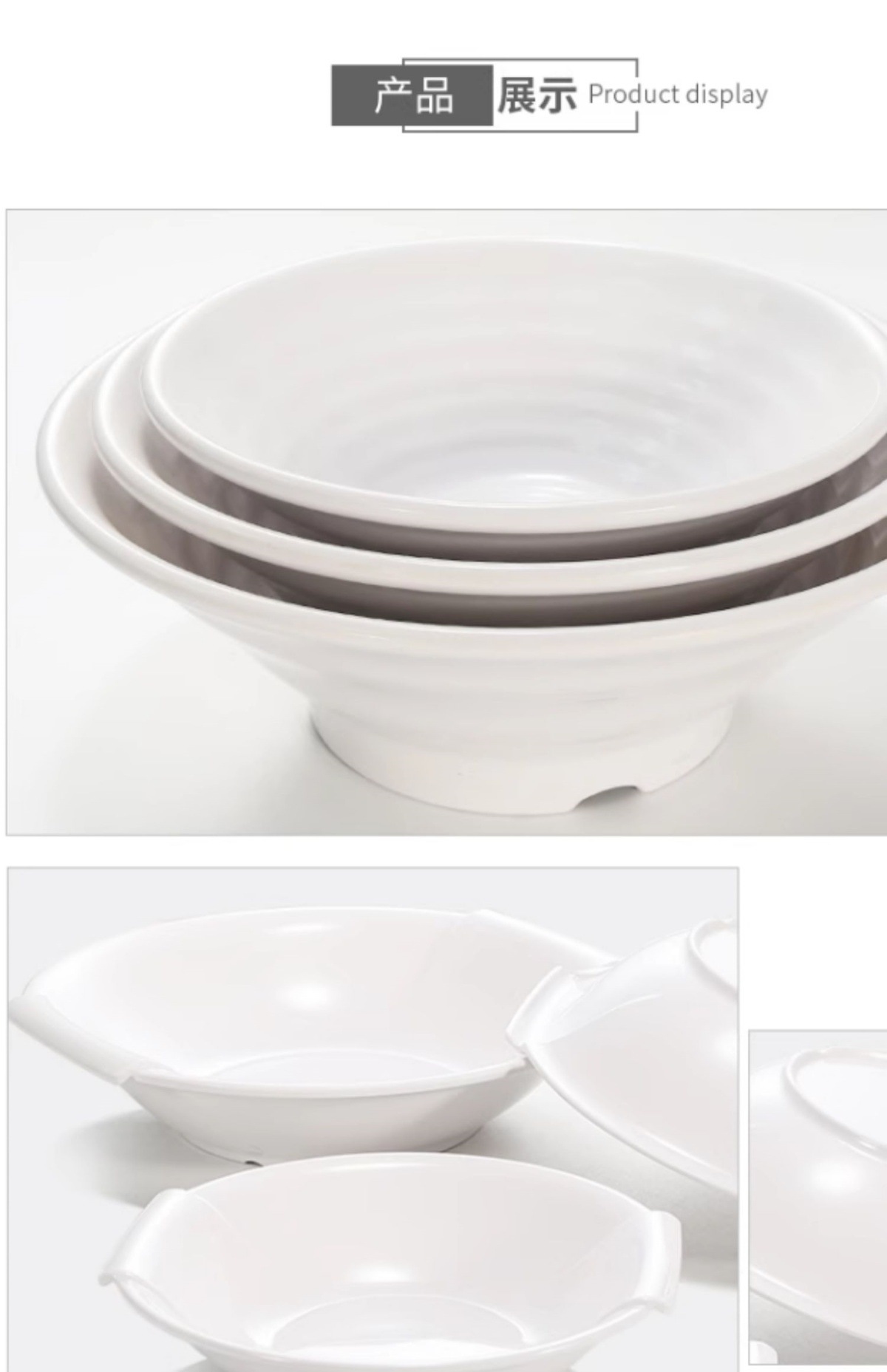 メラミンラーメンの碗は磁器の日本式の白い笠のラッパの碗のプラスチックの野菜の大きい碗の米の線状の碗のスープの粉の碗をまねて商用利用します。