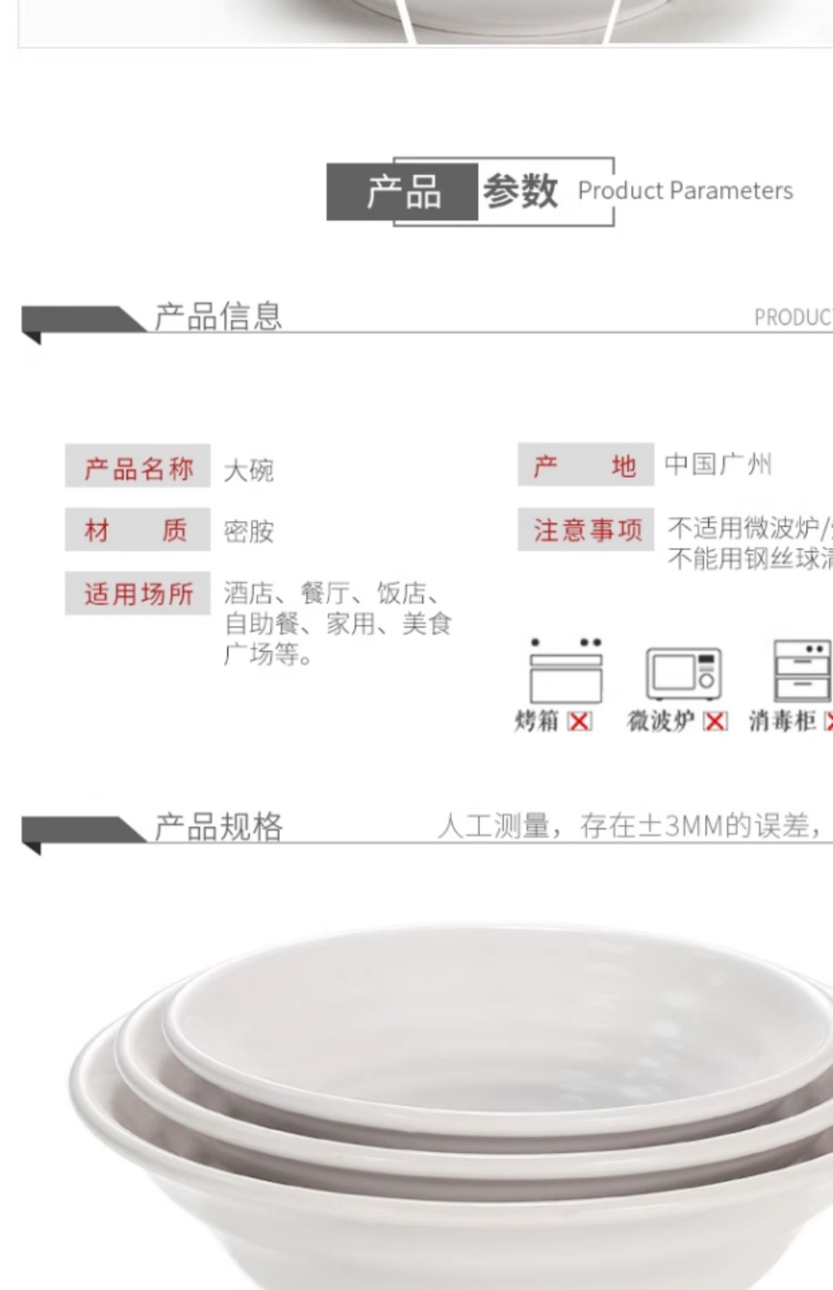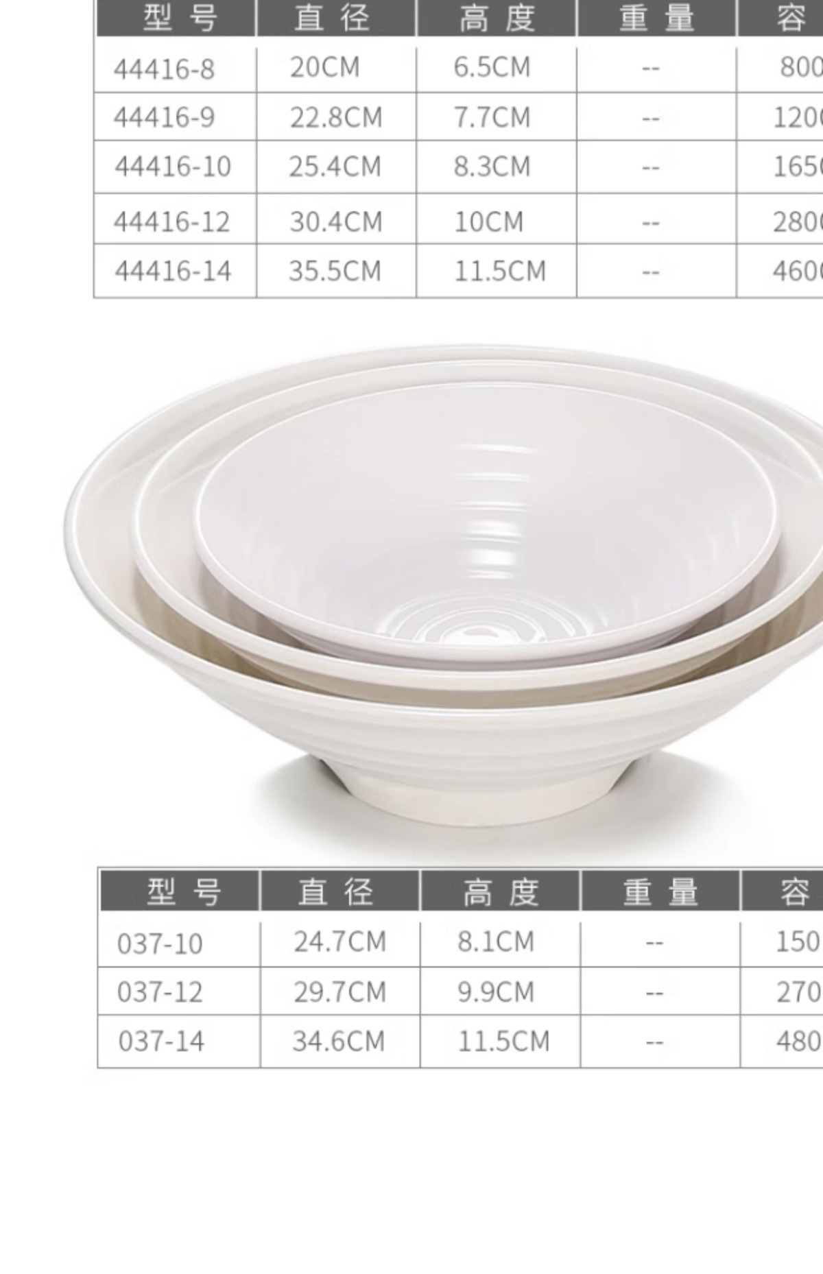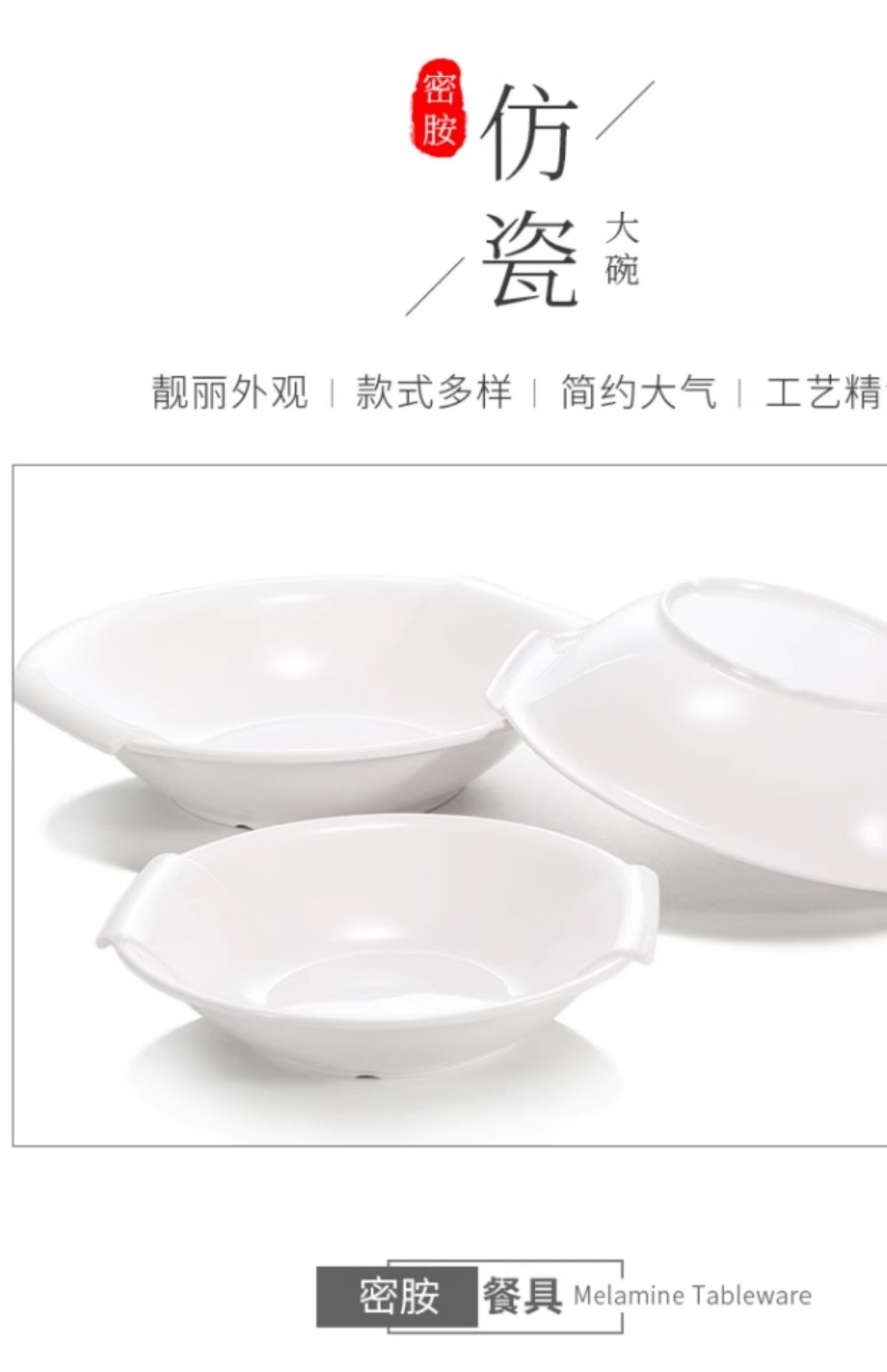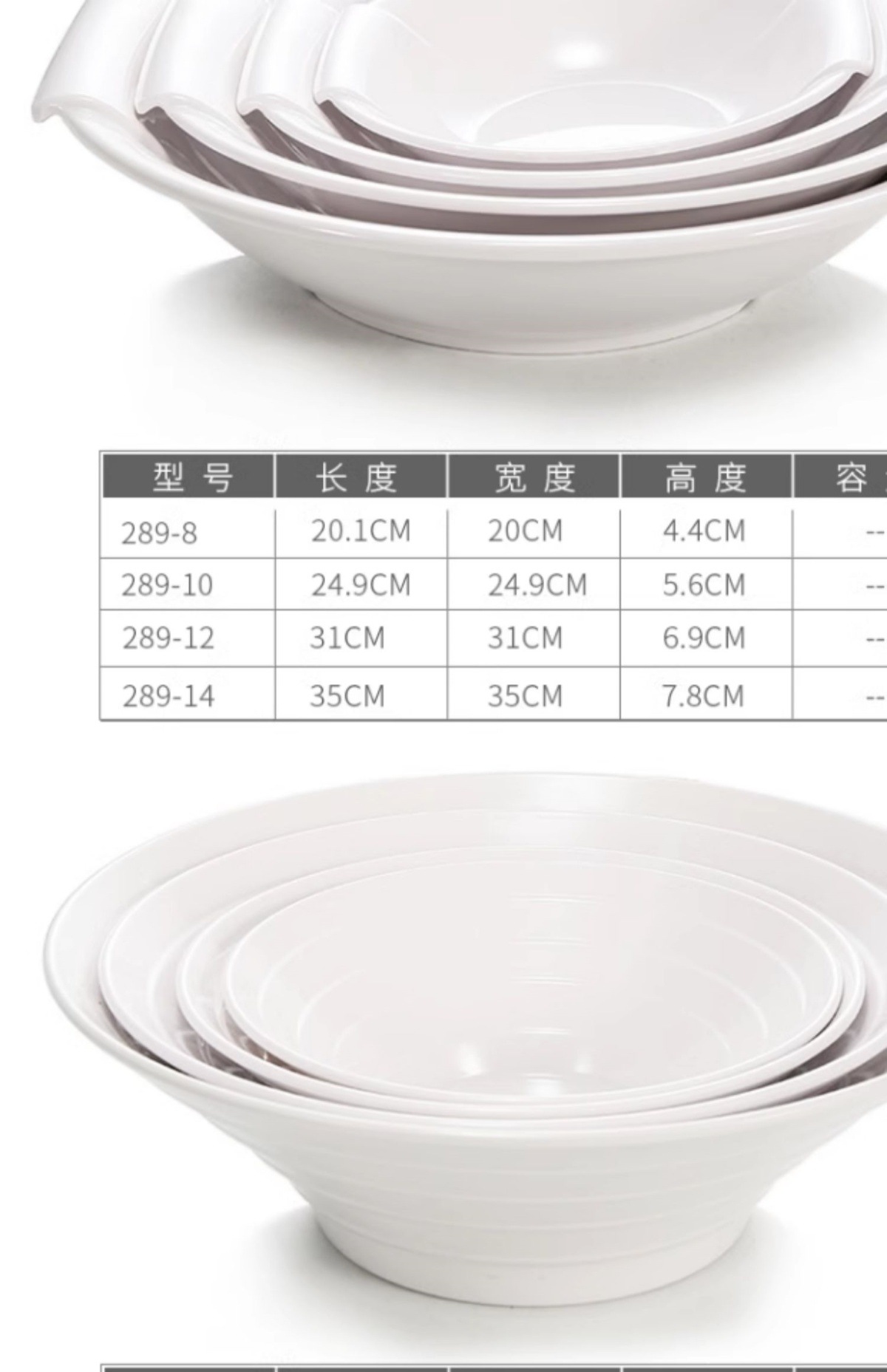 メラミンラーメンの碗は磁器の日本式の白い笠のラッパの碗のプラスチックの野菜の大きい碗の米の線状の碗のスープの粉の碗をまねて商用利用します。