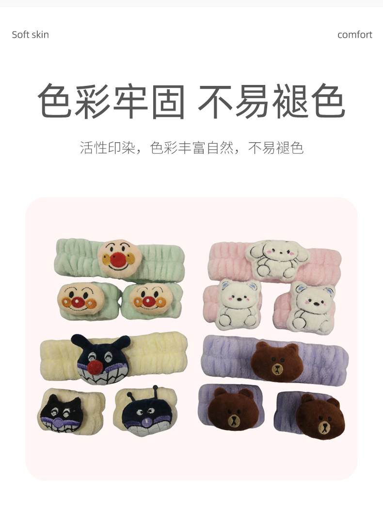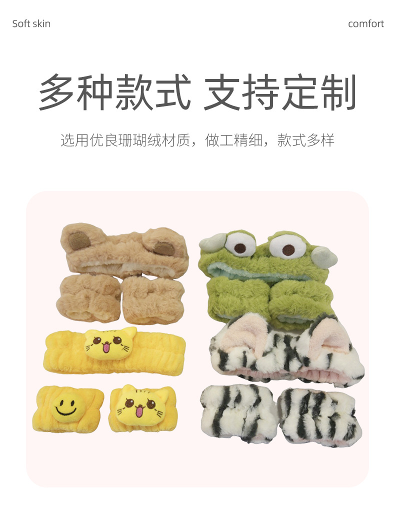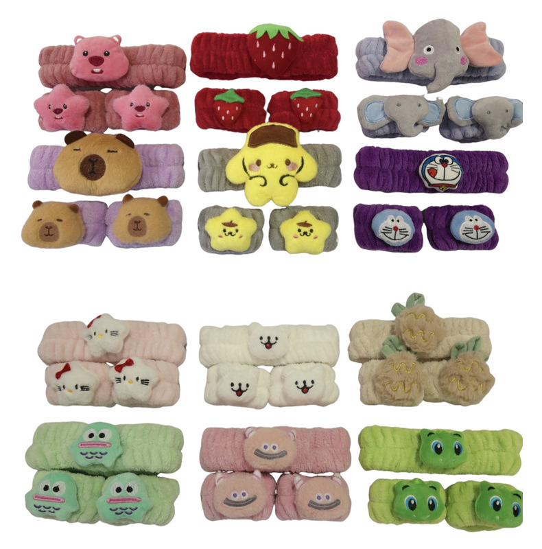 クロスボーダー純色アニメ動物ヘアバンド3点セット洗顔化粧防湿手首セットアマゾン爆金