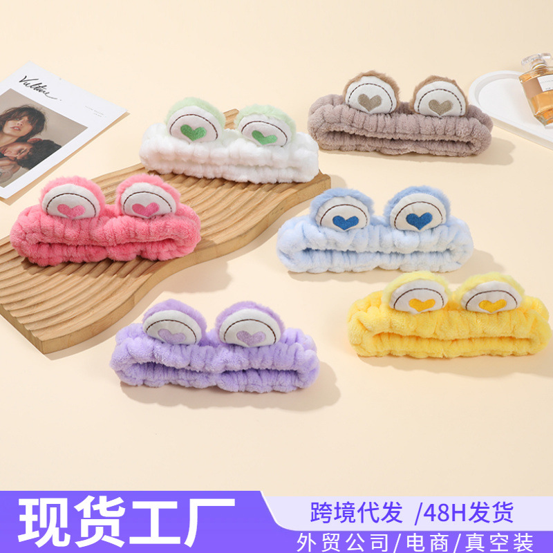 秋冬日韩新款青蛙大眼睛洗脸发带可爱卡通发箍女面膜毛绒爱心头箍