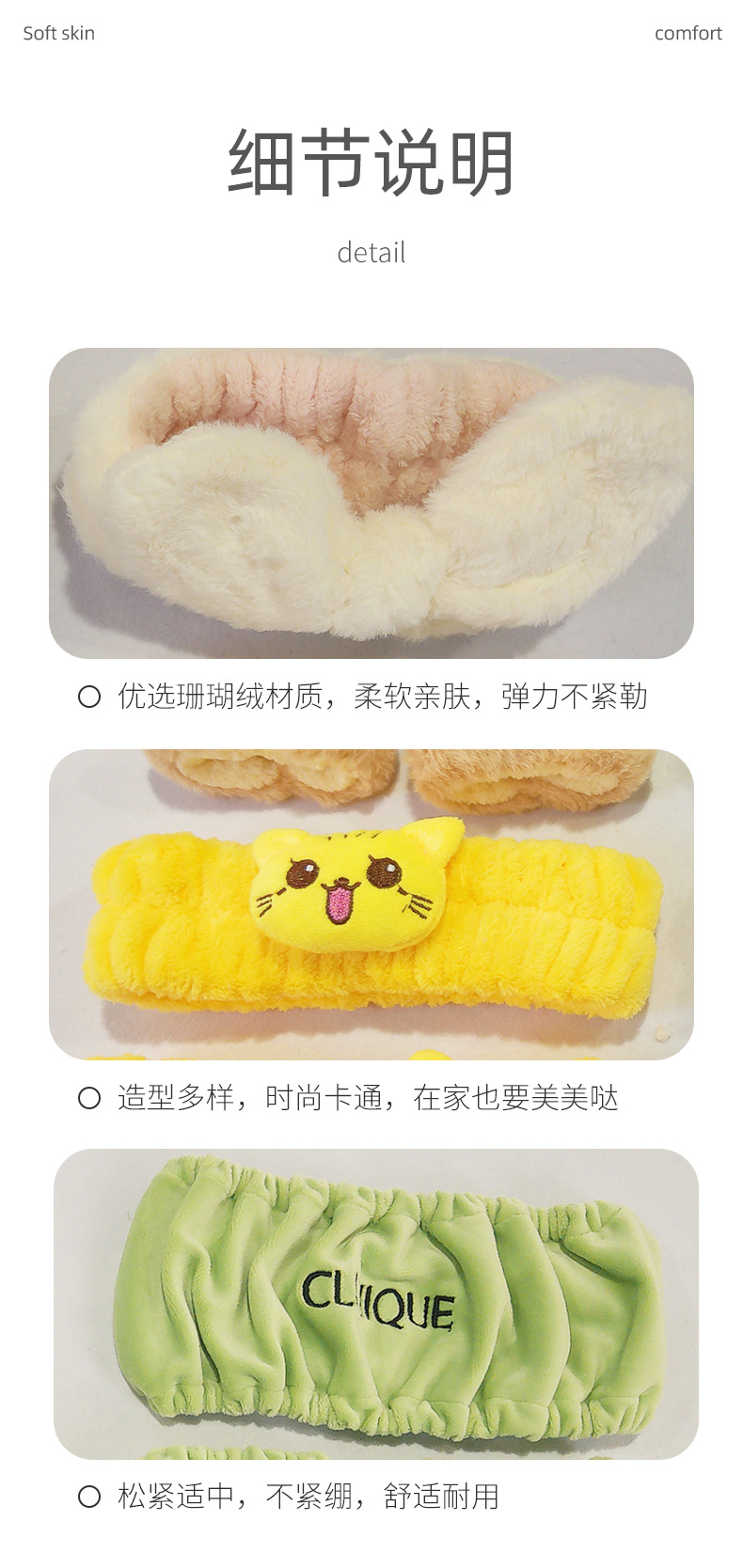 クロスボーダー専用ヘアバンド洗顔化粧カチューシャカスタム水晶超柔らかいカチューシャ入浴カチューシャ