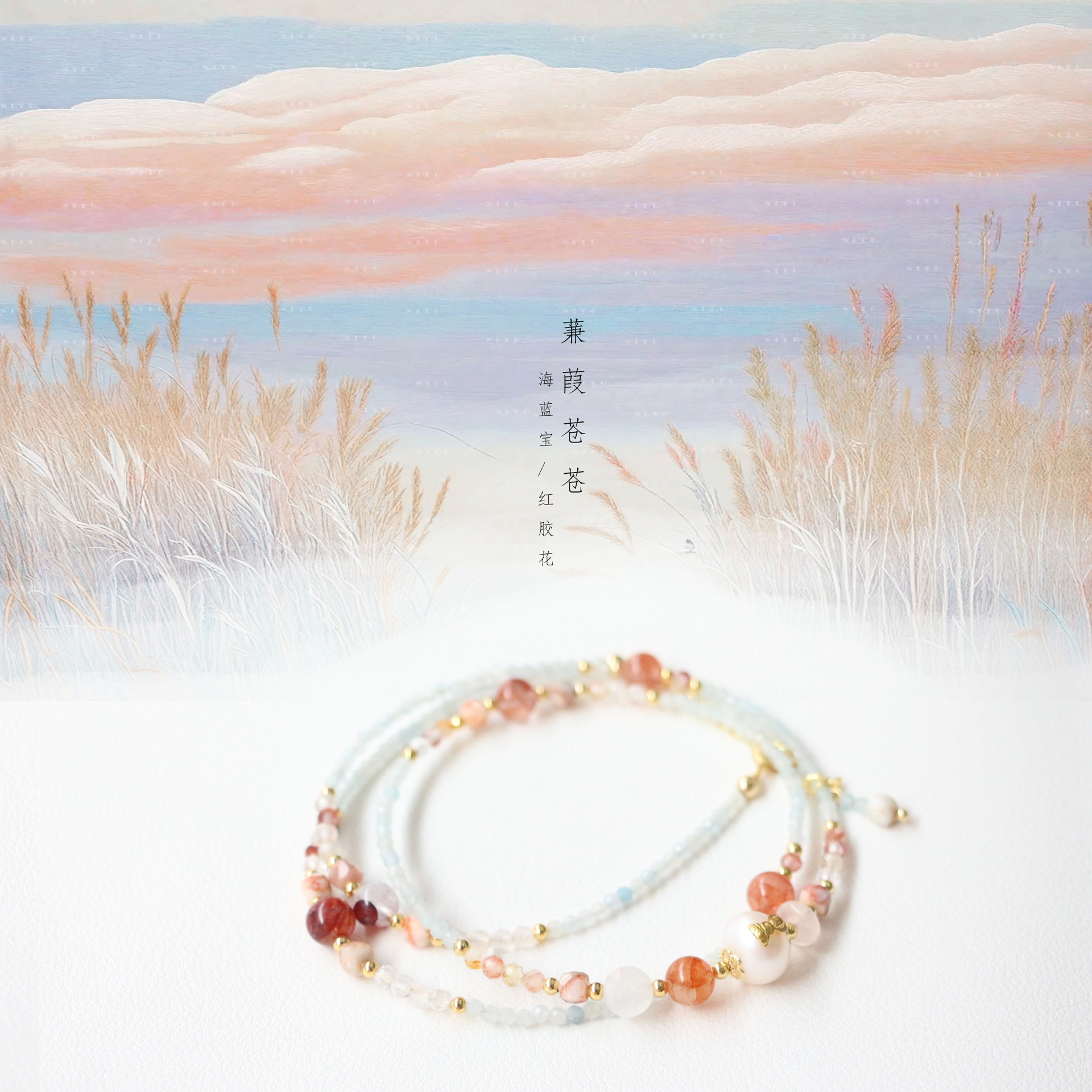【さく葭蒼蒼】赤いゴムの花は色の海藍宝の3mmの切断面の細い金の単輪を打ってブレスレットの3回転のネックレスをつけます。