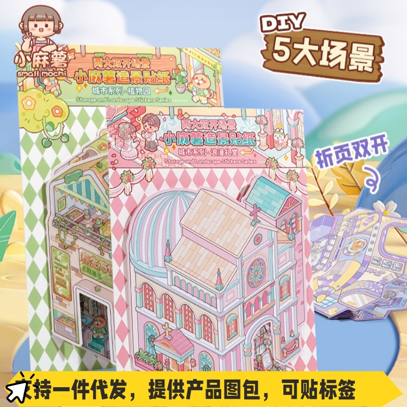 小さなもち 3D ミニチュア都市立体造園カットなし DIY 手作り装飾ステッカー女の子と子供のハンドブックステッカー