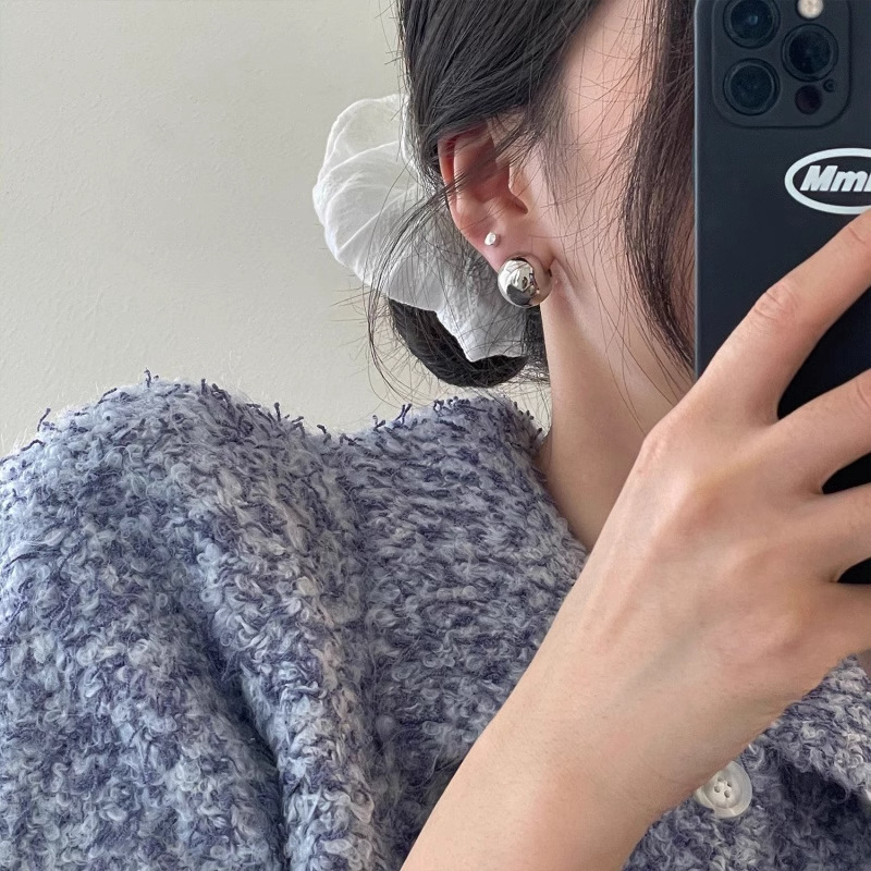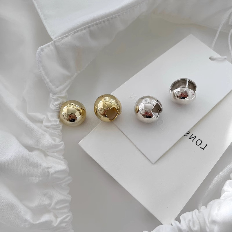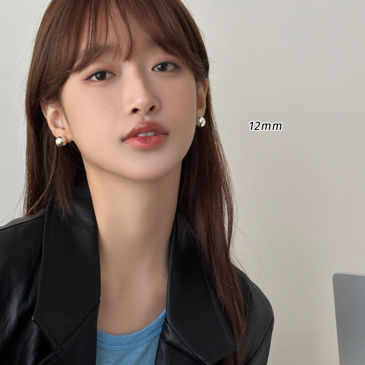 高級感欧米s925純銀イヤリング女性ボールピアス2025年金属風気質円形幾何学イヤリング