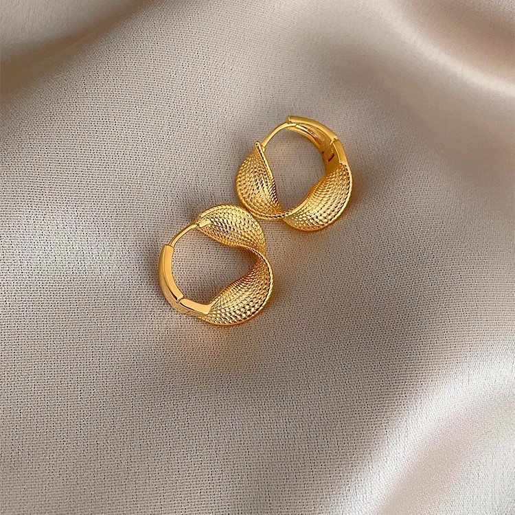 2025设计感几何圆圈扭转纹理耳环女轻奢高级感气质耳扣冷淡风耳饰